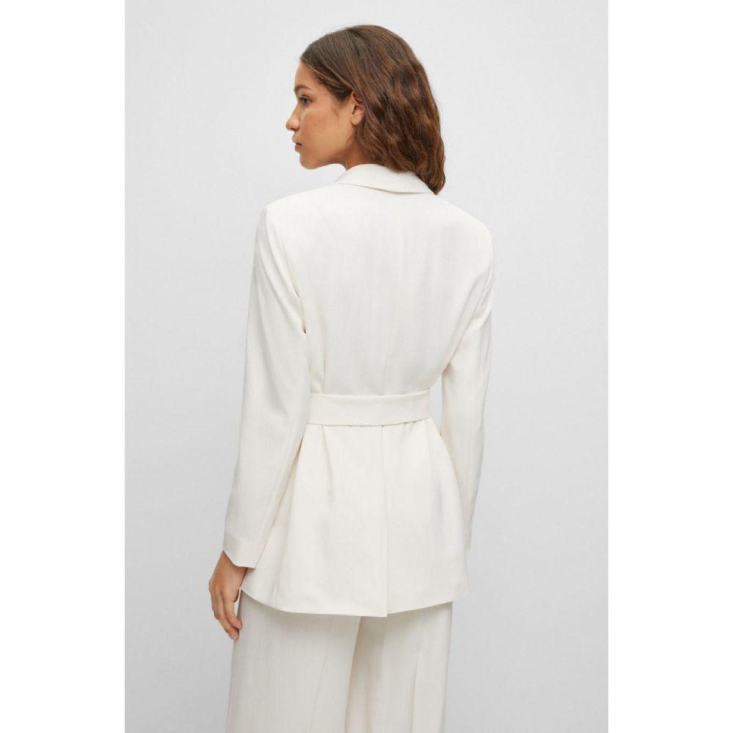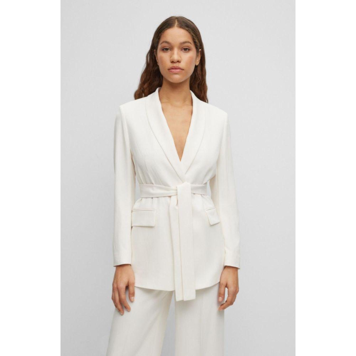• A softly tailored jacket with full lining and a hardware-detailed fabric belt by BOSS Womenswear.
