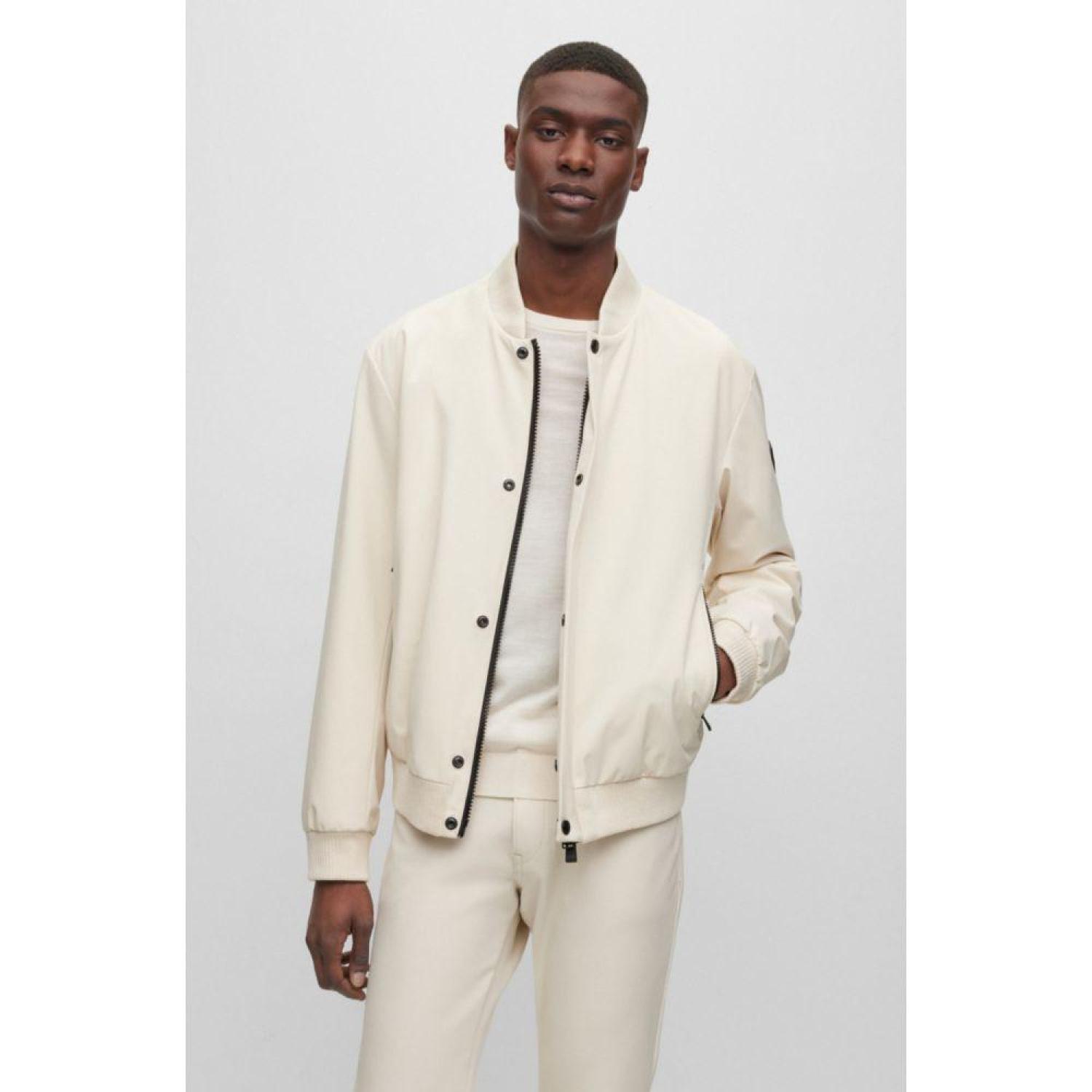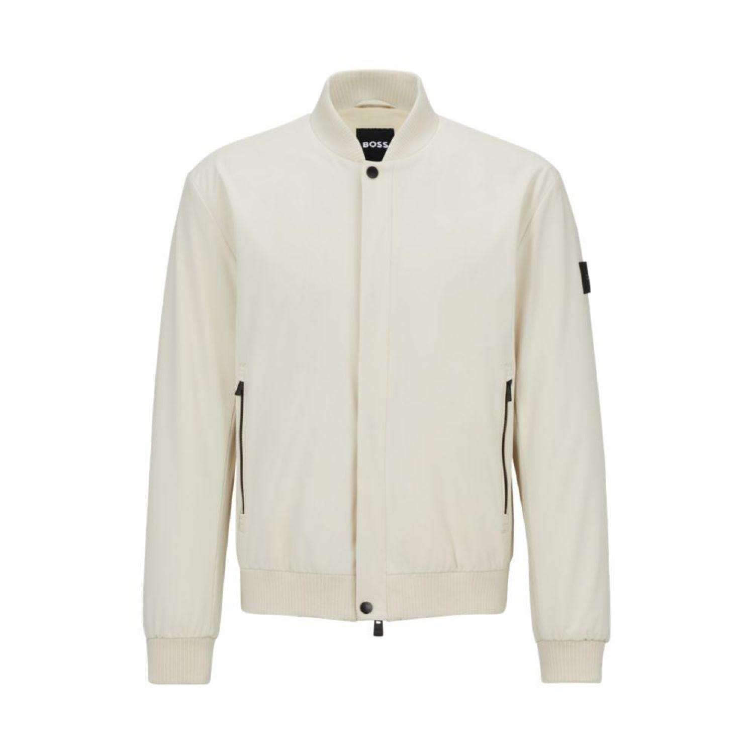 • A regular-fit softshell jacket by BOSS Menswear, crafted in stretch fabric with a water-repellent finish and featuring a covered placket and college collar.