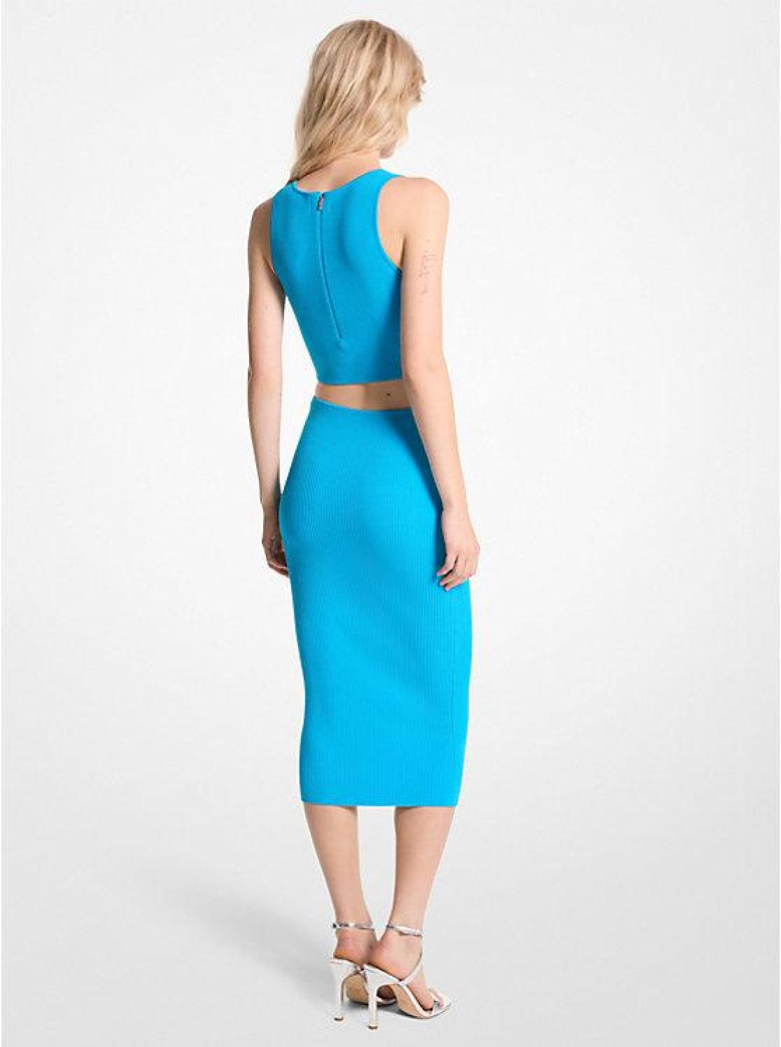 Ribbed Stretch Knit Cutout Midi Dress