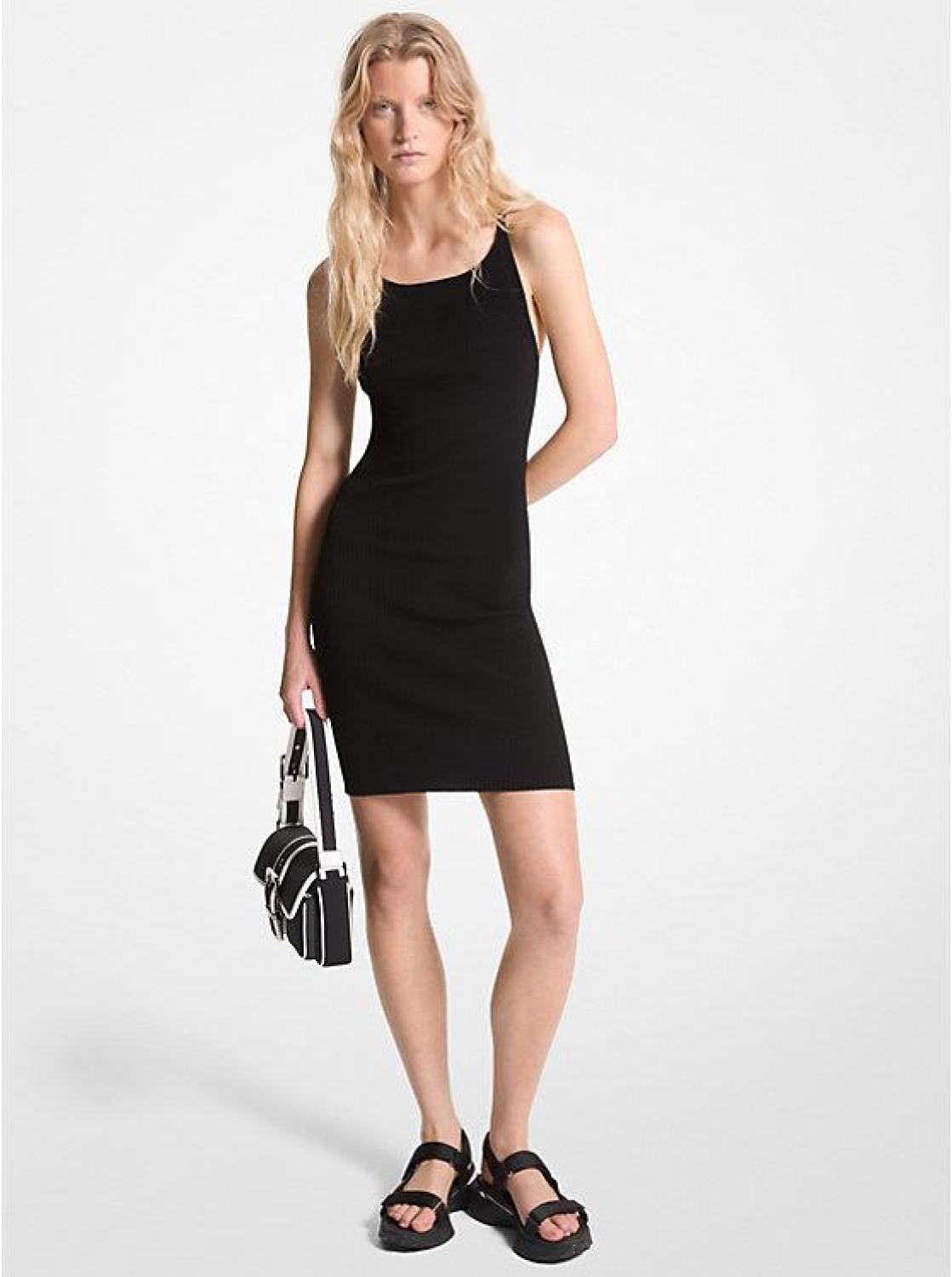 • Whether styled up or down, this tank dress is the kind of piece you’ll wear on repeat. It’s cut from ribbed stretch knit with a flattering high neckline that falls to a mini hem. Layer it with a crisp collared shirt to give the look a touch of off-duty polish.