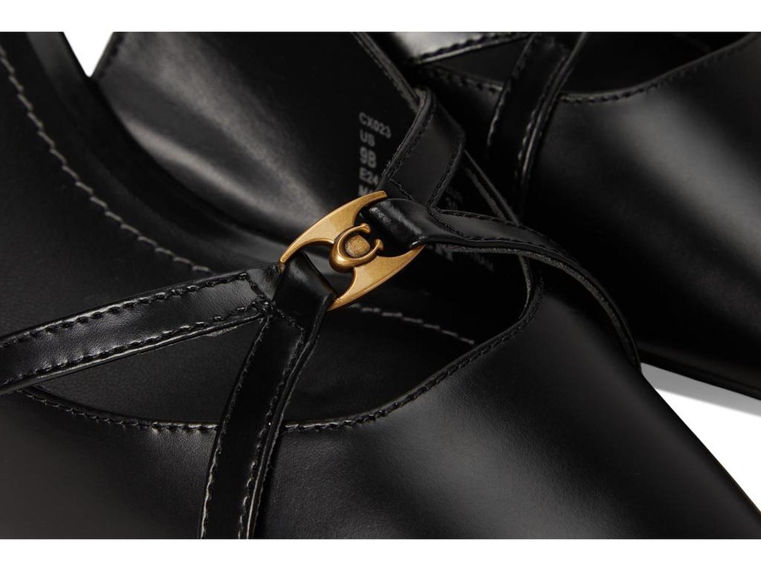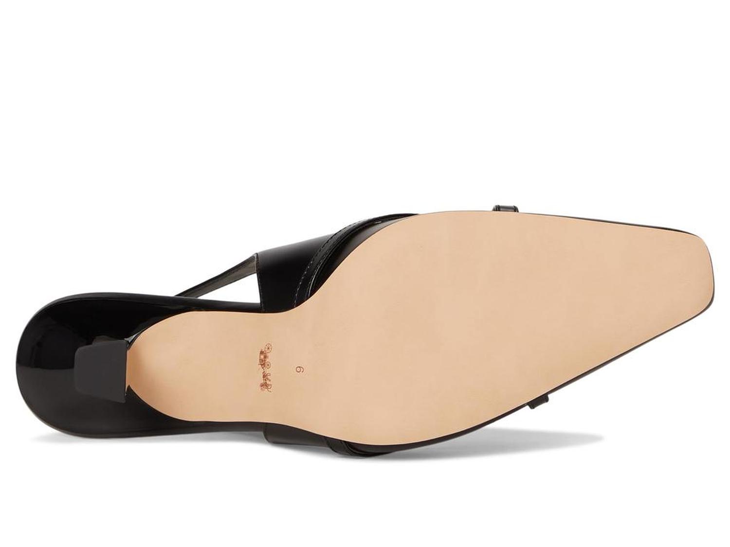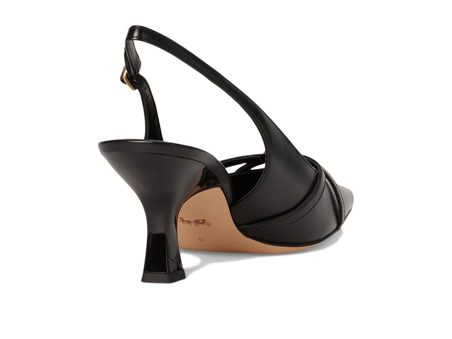 From busy days at the office to dinner, maintain your effortless style in the COACH® Rowyn Leather Slingback. These chic shoes feature an adjustable slingback buckle closure in a square toe silhouette, crafted from a leather upper, man-made leather lining, leather insole, and crisscross straps with branding hardware on vamp.