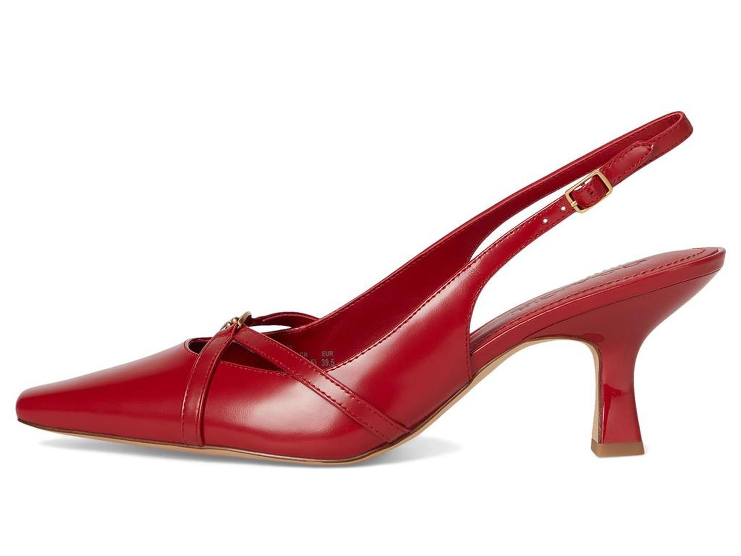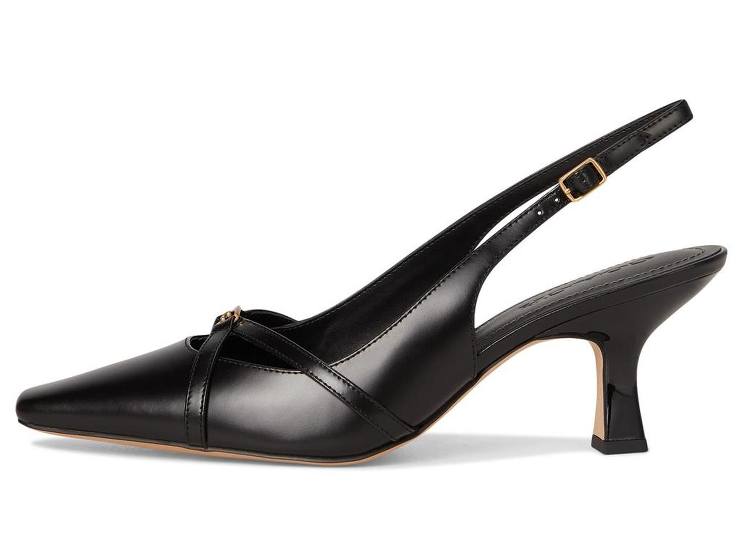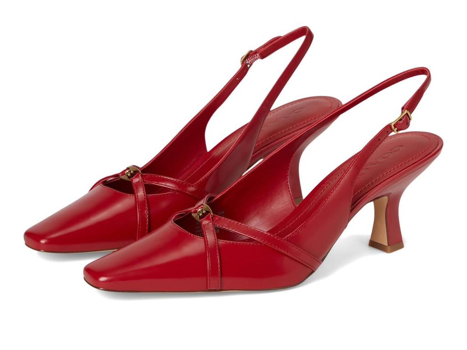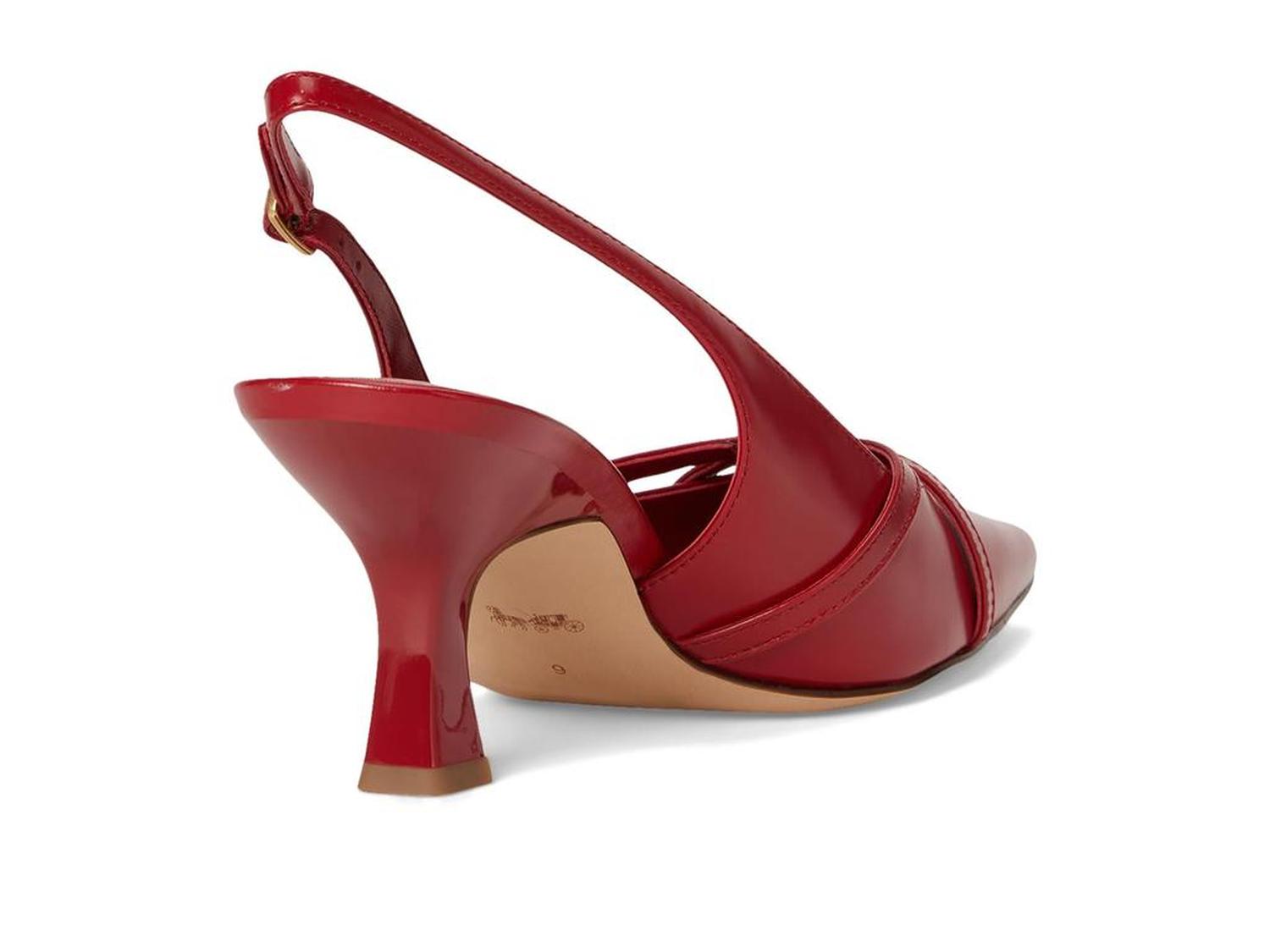 From busy days at the office to dinner, maintain your effortless style in the COACH® Rowyn Leather Slingback. These chic shoes feature an adjustable slingback buckle closure in a square toe silhouette, crafted from a leather upper, man-made leather lining, leather insole, and crisscross straps with branding hardware on vamp.