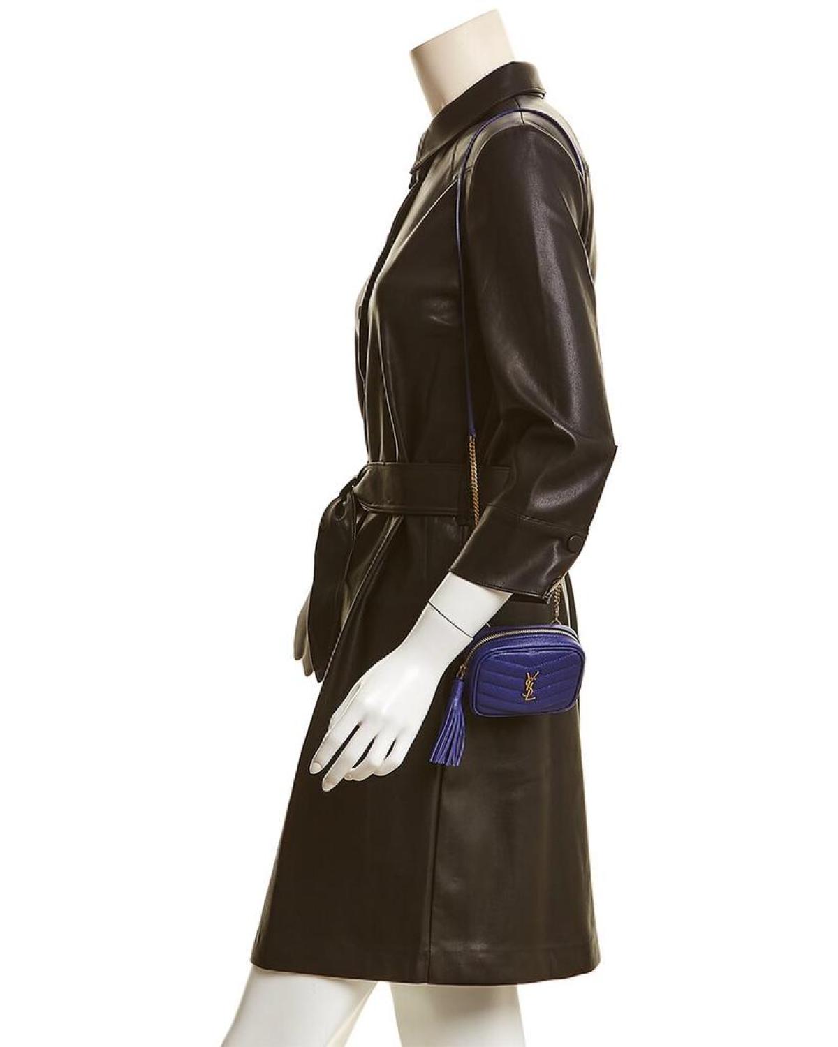 • Introducing the Saint Laurent Lou Baby Matelasse Leather Camera Bag, the epitome of iconic, modern glam. This exquisite crossbody bag is the perfect addition to any fashionable woman's collection.Crafted in Italy, this bag features a stunning blue quilted leather exterior, adorned with luxurious gold-tone hardware and a monogram accent. The tassel zipper pull adds an extra touch of elegance.Inside, you'll find a fabric lining with meticulous attention to detail. The compact size of this bag measures 4.5 inches wide, 3.5 inches high, and 1.5 inches deep, making it ideal for carrying your essentials while on the go.The removable shoulder strap drops 20 inches, allowing for versatile styling options. Whether you prefer to wear it as a crossbody or remove the strap for a chic evening clutch, this bag has got you covered.The zipper closure ensures that your belongings stay safe and secure. Please note that all measurements were taken by hand, and slight variations may occur.Rest assured, our products are 100% genuine. While we sometimes purchase merchandise from trusted independent suppliers, we always stand by the authenticity of every product sold on our site.Indulge in the unmatched elegance and sophistication of the Saint Laurent Lou Baby Matelasse Leather Camera Bag. Shop now and experience the glamour of this coveted accessory.