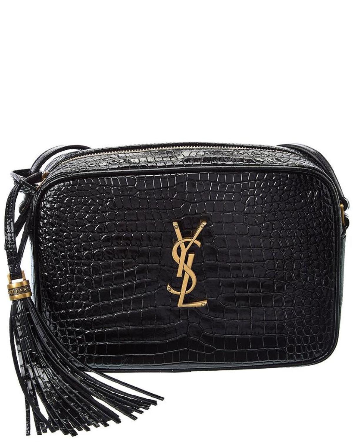 Introducing the Saint Laurent Lou Croc-Embossed Leather Camera Bag, a true epitome of iconic, modern glamour and a must-have addition to any fashion forward woman's wardrobe. Crafted with utmost precision in Italy, this stunning crossbody bag showcases an exquisite black croc-embossed leather exterior, lending it a timeless and luxurious appeal. The gold-tone hardware and removable tassel accent add a touch of sophistication and versatility to its overall design.As elegant as it is practical, the interior of this camera bag features a fabric lining and an interior pocket, ensuring your essentials are organized and easily accessible. The zippered top closure provides added security, making it perfect for both daily outings and special occasions.Measuring at 9 inches wide, 6.5 inches high, and 2.5 inches deep, this compact bag offers ample space for your belongings while remaining effortlessly stylish. The adjustable shoulder strap allows for a customizable fit, with a generous drop of 25 inches.Please note that all measurements were taken by hand and are approximate; slight variations may occur, adding a unique touch to each piece. With Saint Laurent, you can always be sure of the highest level of quality and craftsmanship. At our store, we guarantee that our products are 100% genuine. While we sometimes source merchandise from trusted independent suppliers, rest assured that we stand by the authenticity of every product sold on our site. Experience the allure of Saint Laurent and elevate your style with the Lou Croc-Embossed Leather Camera Bag.