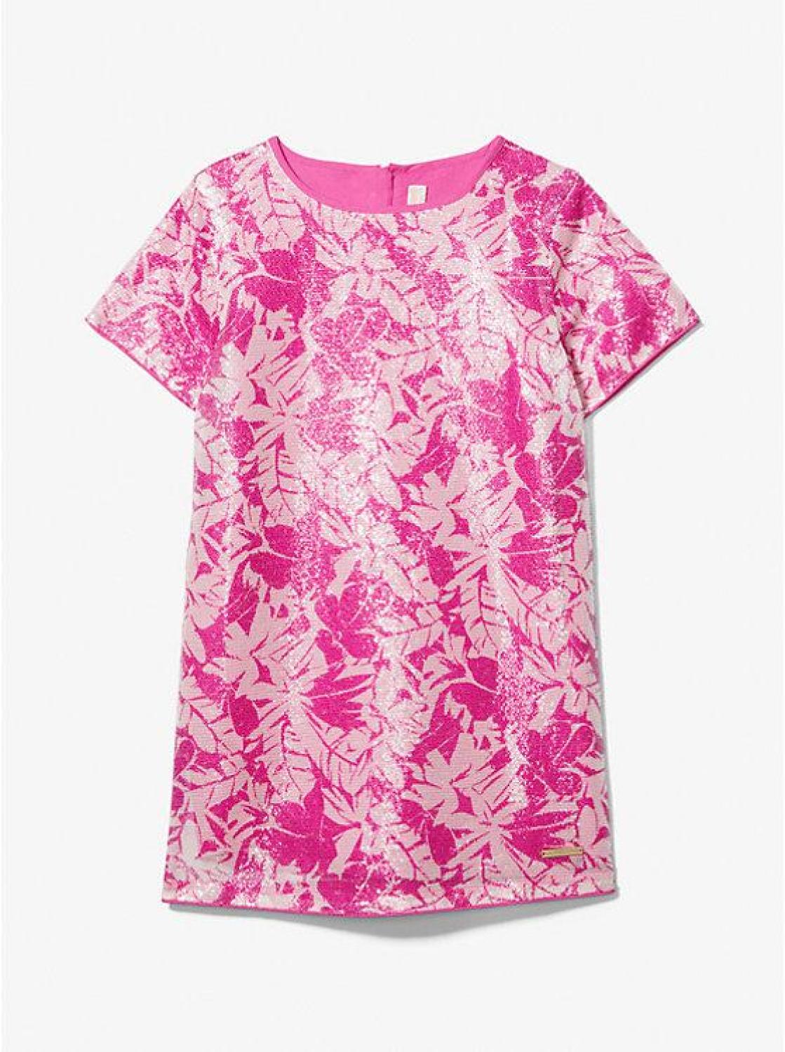• Designed with allover sequin embellishments, this glittering dress is as bright as she is. It’s covered with this season’s palm print in a vibrant blend of pink hues for a girly twist. Even better? It matches back to our womenswear prints this season for a mommy-and-me look.