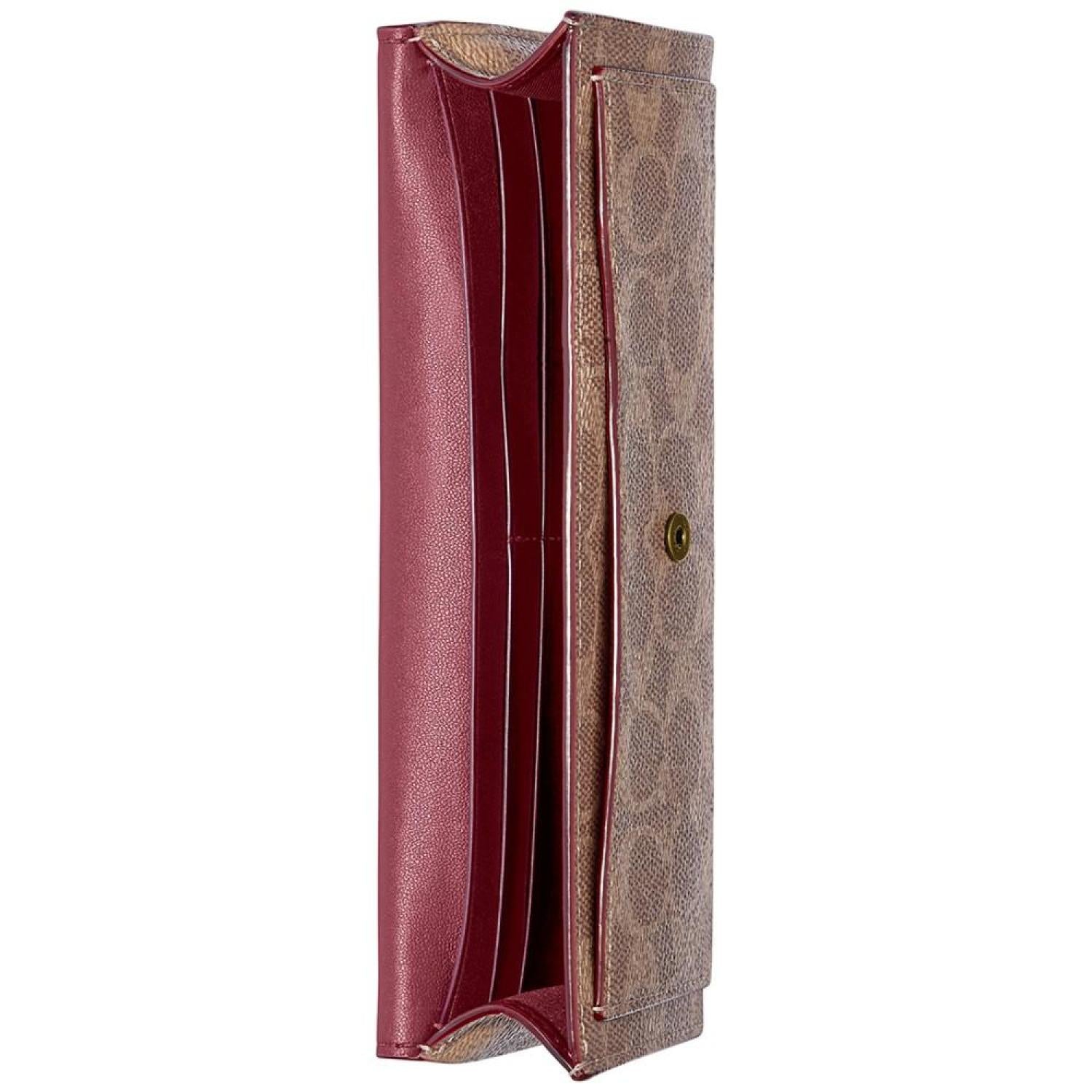 - Let the Wyn Leather Wallet hold your essentials in style. Snap closure 8 credit card slots and full-length bill compartment Outside zip pocket 7 3/4" (W) x 3 1/2" (H) Signature coated canvas and refined calf leather Wipe clean Imported