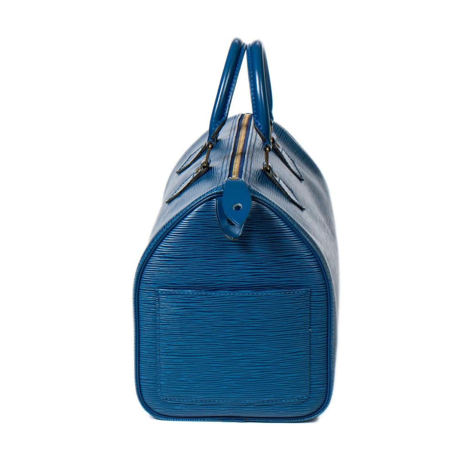 - Louis Vuitton Handbag in Blue Epi and Golden Brass hardware. Dimensions - 32*22*18cm. Serial number - VI0924 (Feb 1994). Inclusions - None. Pre-Owned