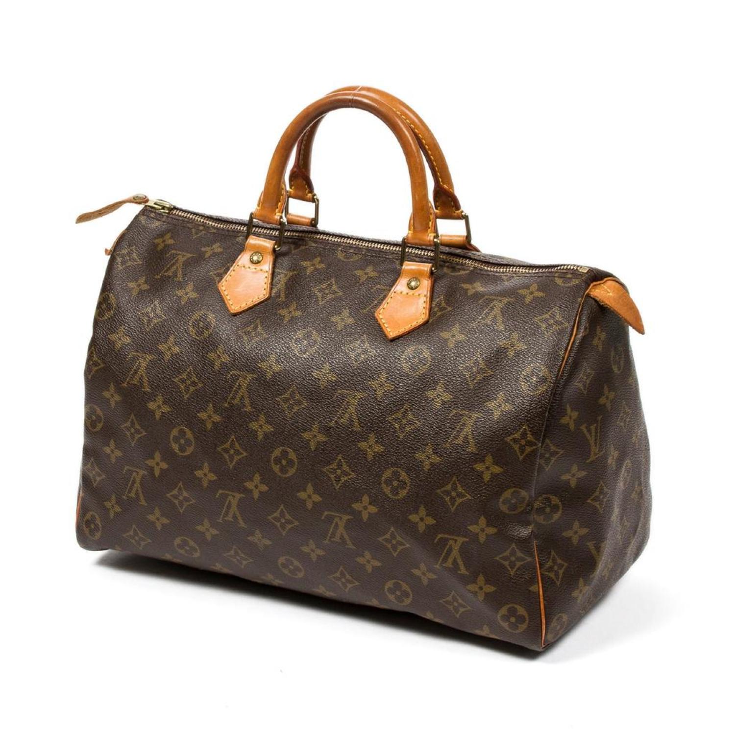 Louis Vuitton Handbag in Brown Monogram Canvas and Golden Brass hardware. Dimensions - 35*22*18cm. Serial number - MB8904 (April 1989). Inclusions - None. Pre-Owned