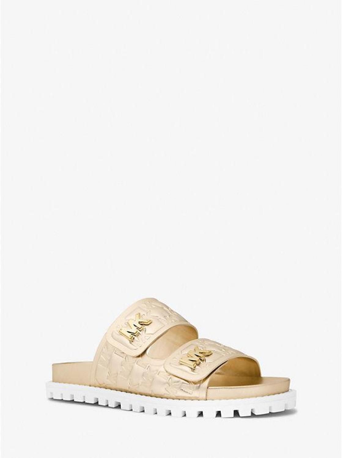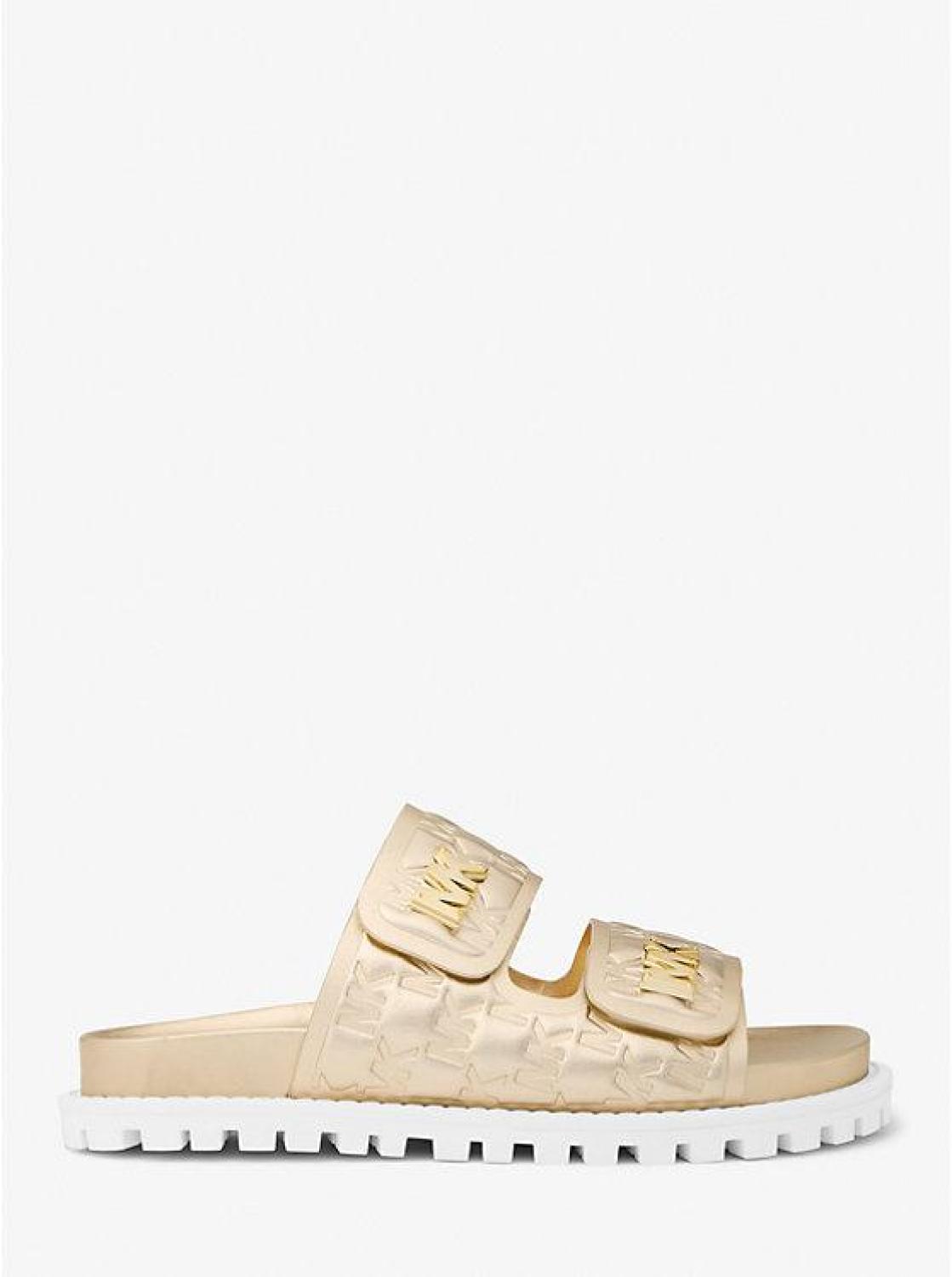 Stark Metallic Logo Embossed Faux Leather Slide Sandal