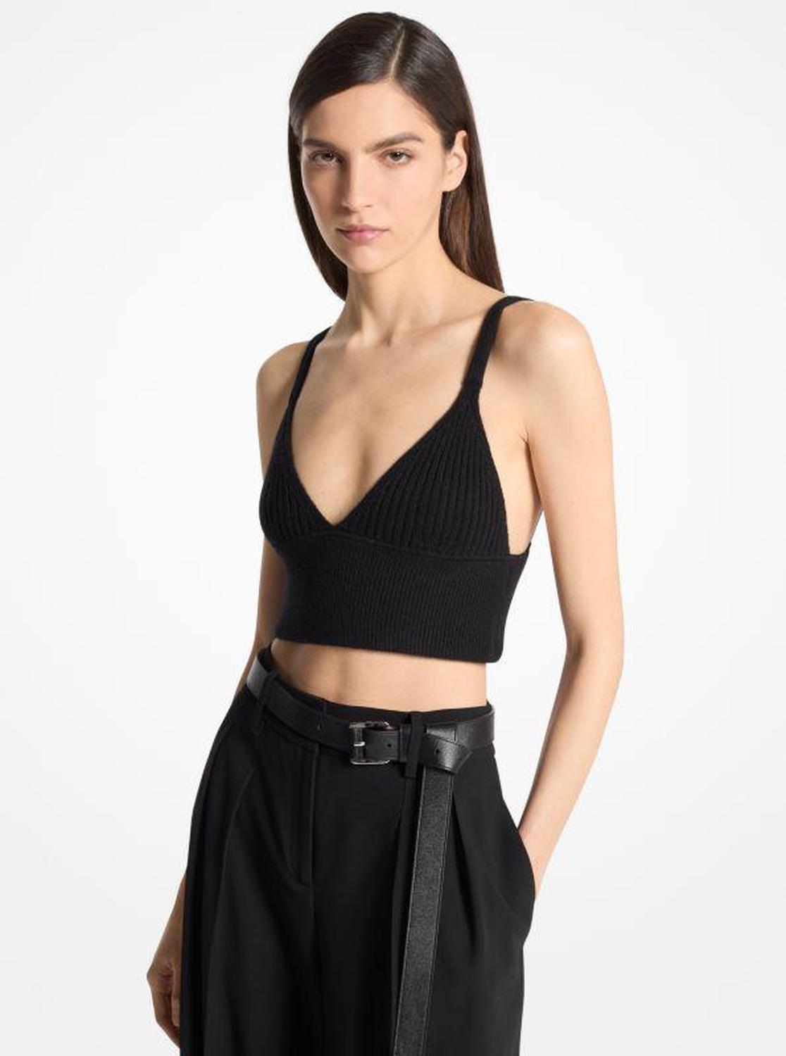 Made from stretch-infused cashmere for a luxurious feel, this dainty ribbed bralette will be a hero staple in your closet. It’s designed with a plunging neckline and cropped hem for an alluring fit. Wear it on its own or layered beneath a blazer.