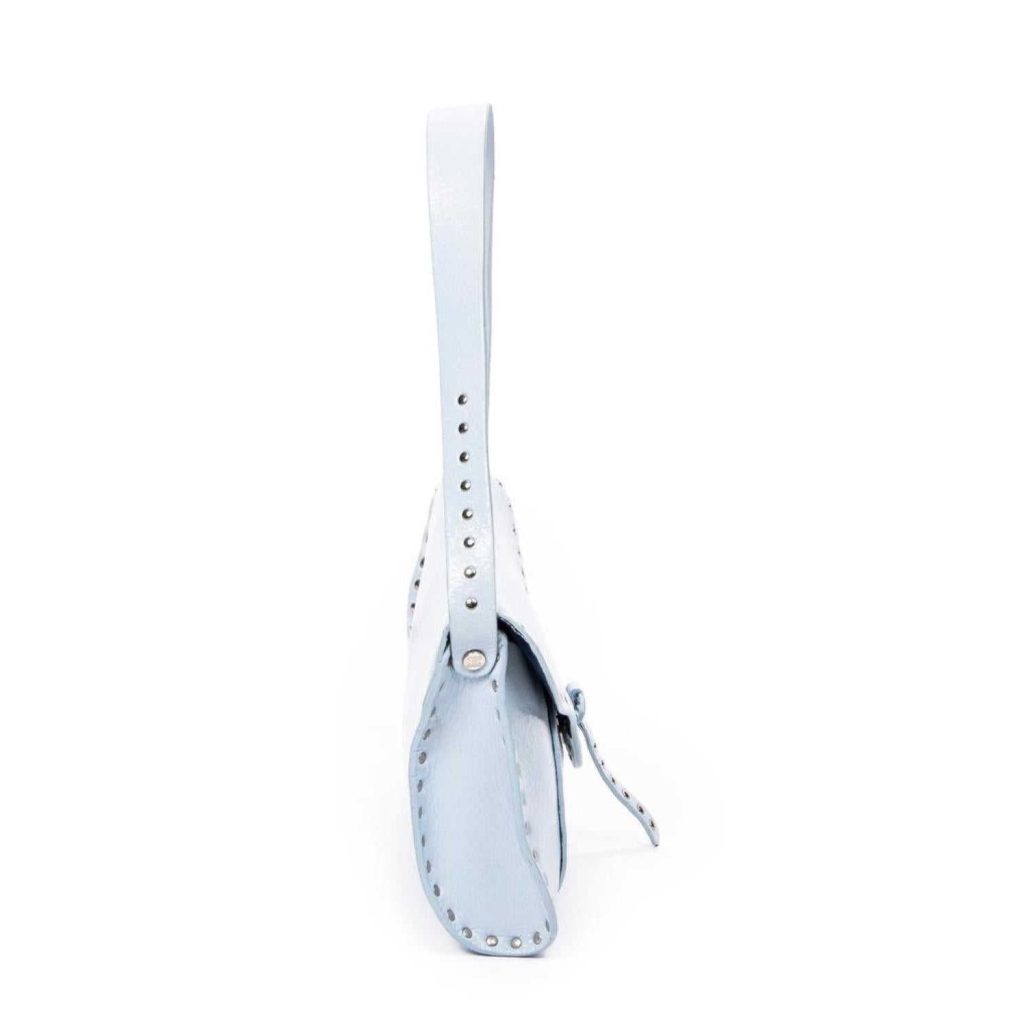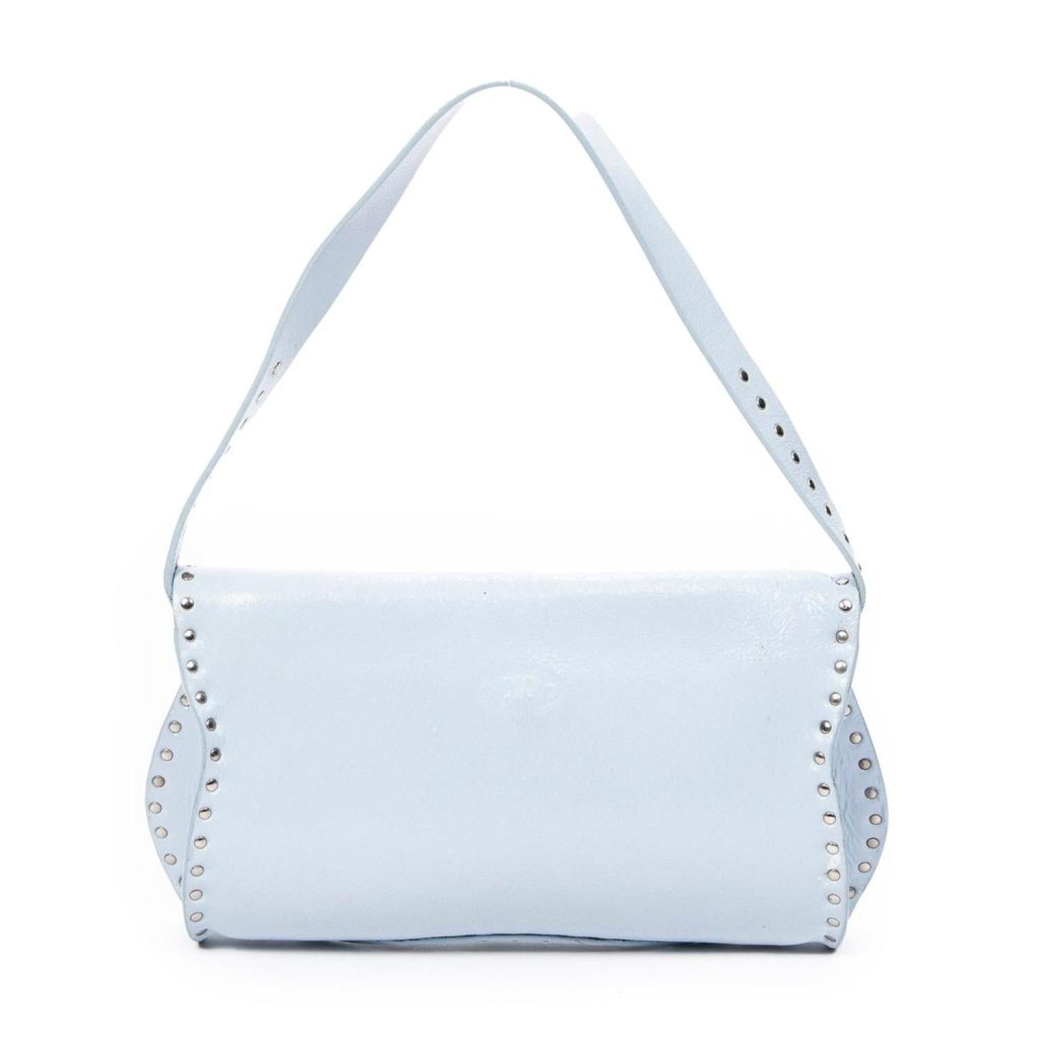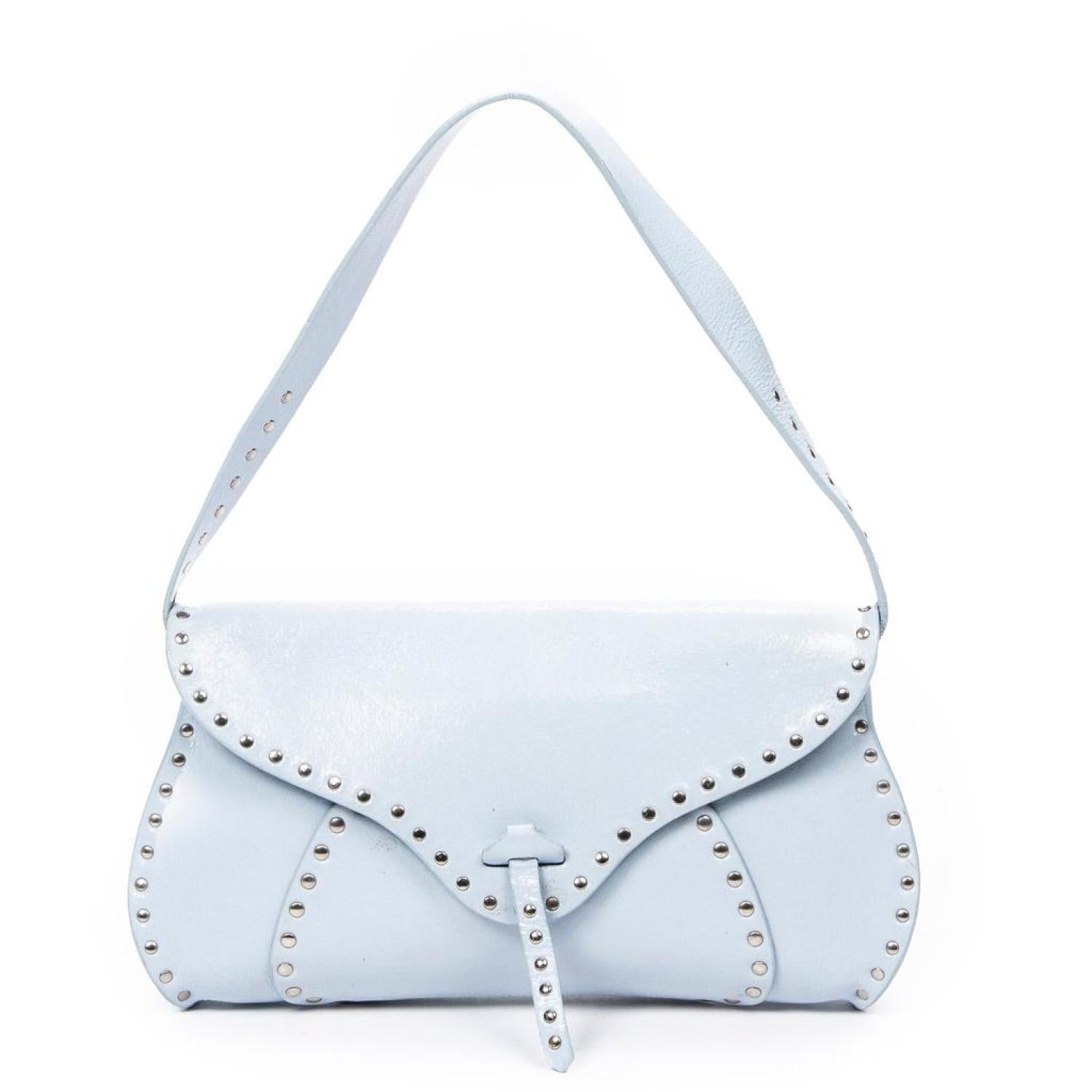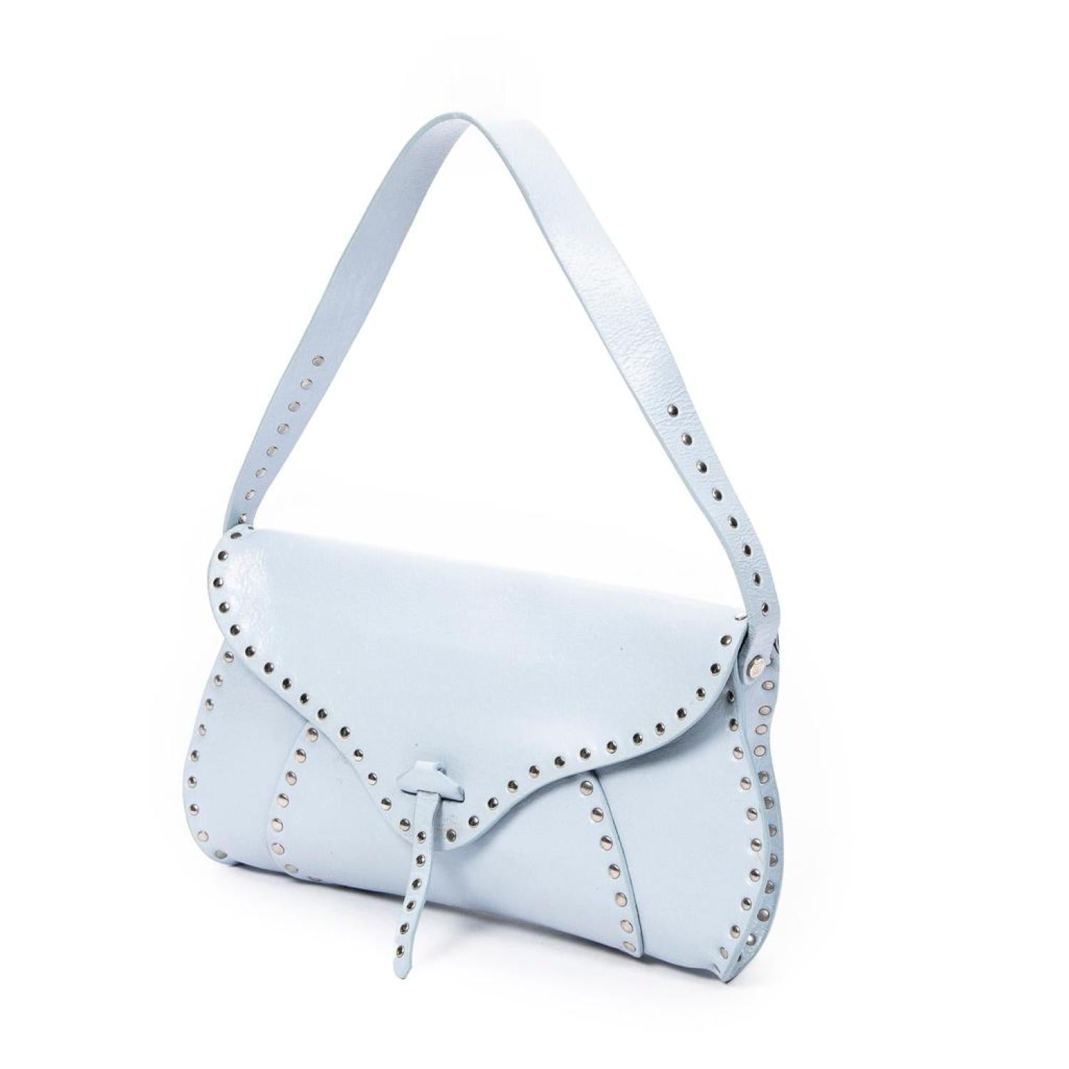 Celine Shoulder Bag in Light Blue Studded Distressed Leather and Silver hardware. Dimensions - 26*15*6cm. Serial number - CE00/23. Inclusions - None.