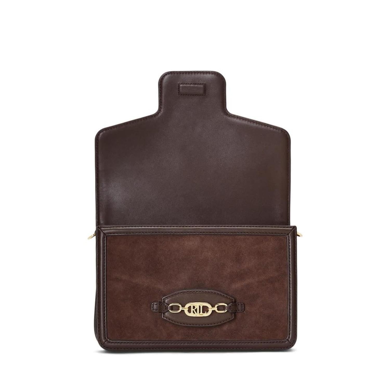 • Elevate your look with the sophisticated LAUREN Ralph Lauren® Suede Medium Sydnee Shoulder Bag. Crafted from a luxurious combination of sumptuous suede and supple full-grain leather. with an iconic "lrl" metal logo at the front, it features a number of interior and exterior pockets for storing your day-to-day necessities.