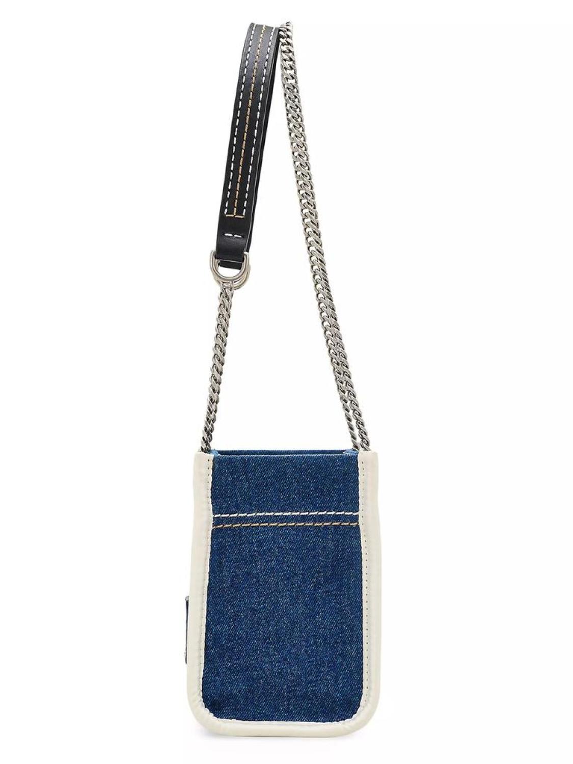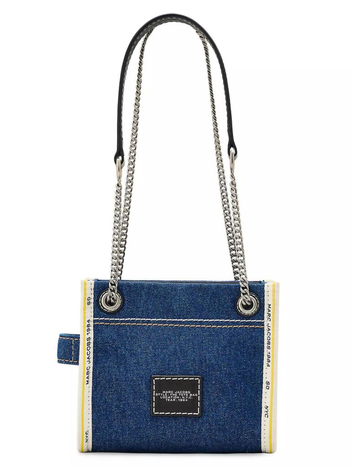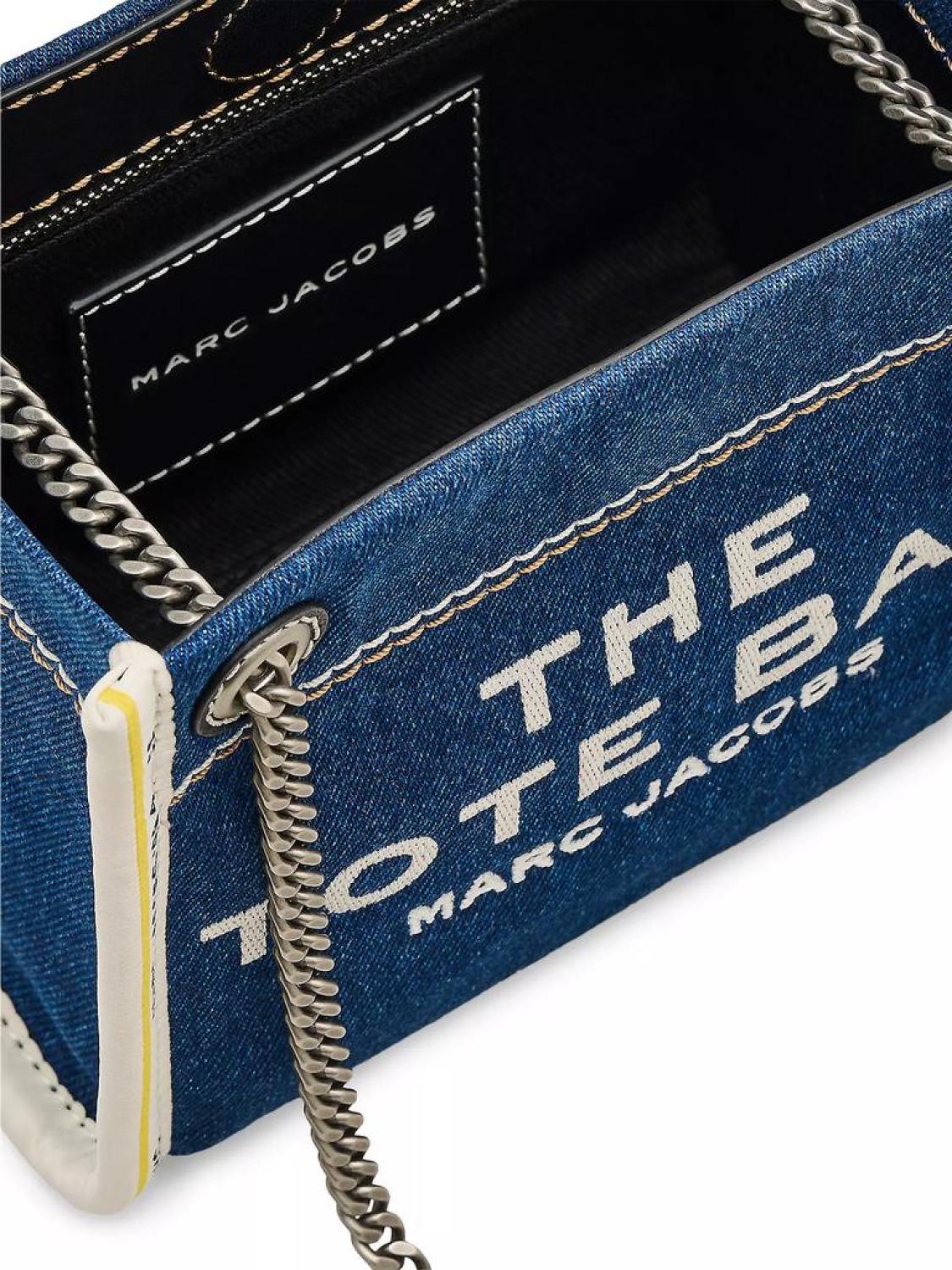 Marc Jacobs's The Denim Chain Crossbody tote bag is a versatile accessory that can be worn as a shoulder bag or crossbody, thanks to the pull-through chain strap. Made of cotton, it features a magnetic closure and an internal zip pocket for secure storage. Adjustable leather and chain-link pull-through shoulder strap Interior: one zip pocket Magnetic closure Cotton Imported SIZE About 7.28"W x 5.91"H x 3.94"D Adjustable pull-through shoulder strap: about 11.22" drop Marc Jacobs's The Denim Chain Crossbody tote bag is a versatile accessory that can be worn as a shoulder bag or crossbody, thanks to the pull-through chain strap. Made of cotton, it features a magnetic closure and an internal zip pocket for secure storage.Adjustable leather and chain-link pull-through shoulder strapInterior: one zip pocketMagnetic closureCottonImportedSIZEAbout 7.28"W x 5.91"H x 3.94"DAdjustable pull-through shoulder strap: about 11.22" drop