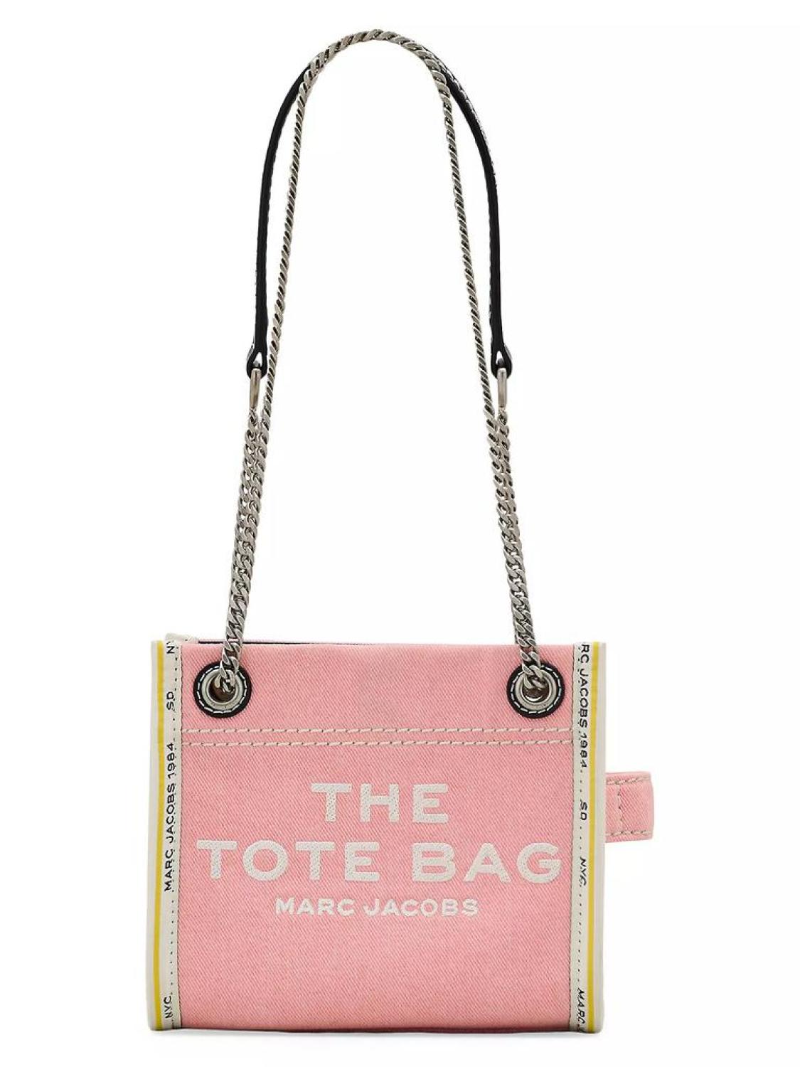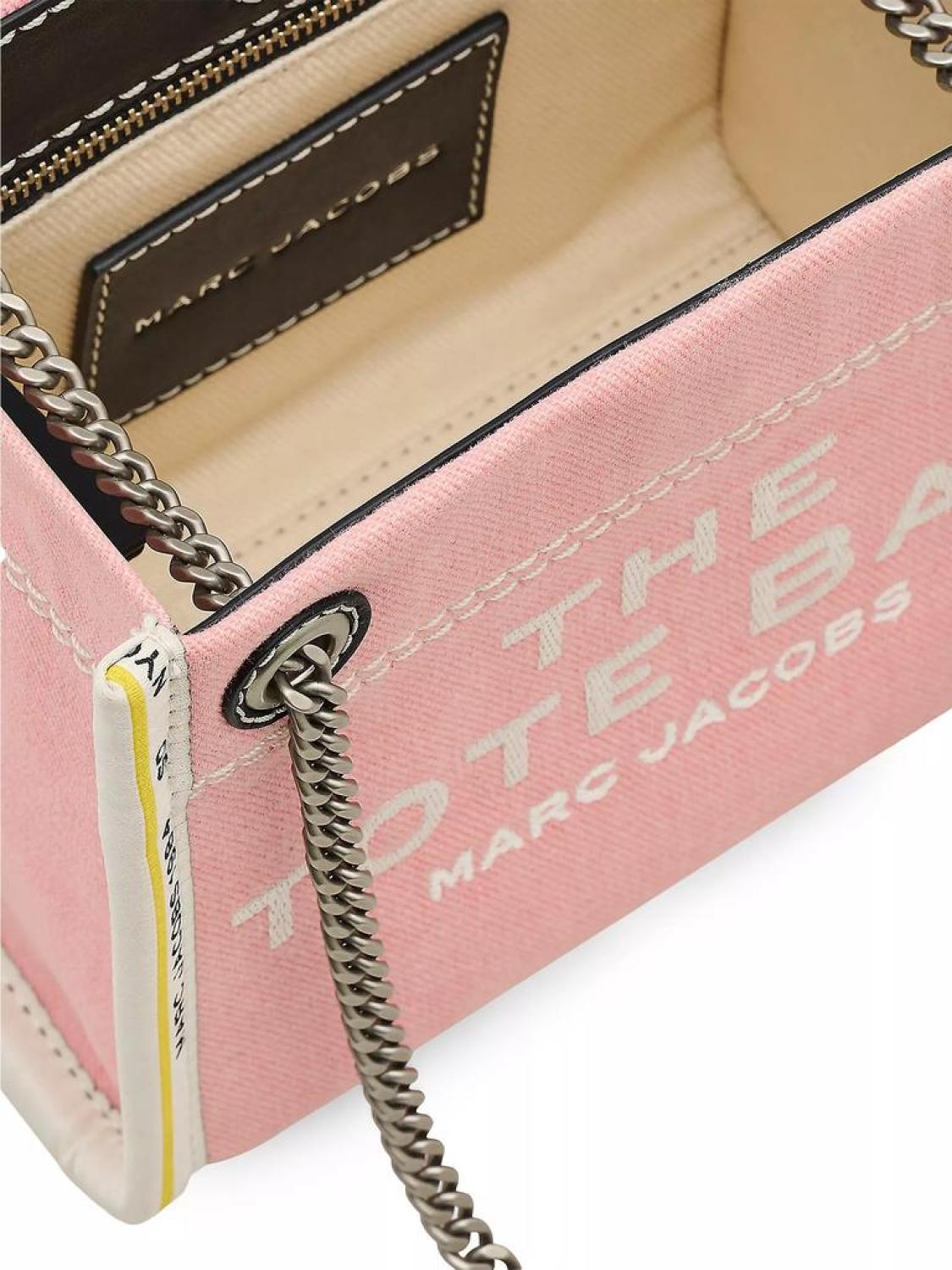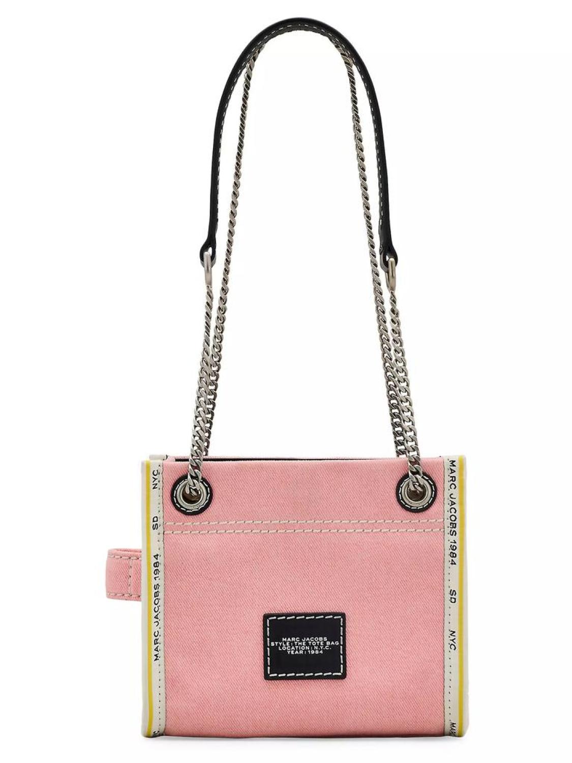 Marc Jacobs's The Denim Chain Crossbody tote bag is a versatile accessory that can be worn as a shoulder bag or crossbody, thanks to the pull-through chain strap. Made of cotton, it features a magnetic closure and an internal zip pocket for secure storage. Adjustable leather and chain-link pull-through shoulder strap Interior: one zip pocket Magnetic closure Cotton Imported SIZE About 7.28"W x 5.91"H x 3.94"D Adjustable pull-through shoulder strap: about 11.22" drop Marc Jacobs's The Denim Chain Crossbody tote bag is a versatile accessory that can be worn as a shoulder bag or crossbody, thanks to the pull-through chain strap. Made of cotton, it features a magnetic closure and an internal zip pocket for secure storage.Adjustable leather and chain-link pull-through shoulder strapInterior: one zip pocketMagnetic closureCottonImportedSIZEAbout 7.28"W x 5.91"H x 3.94"DAdjustable pull-through shoulder strap: about 11.22" drop