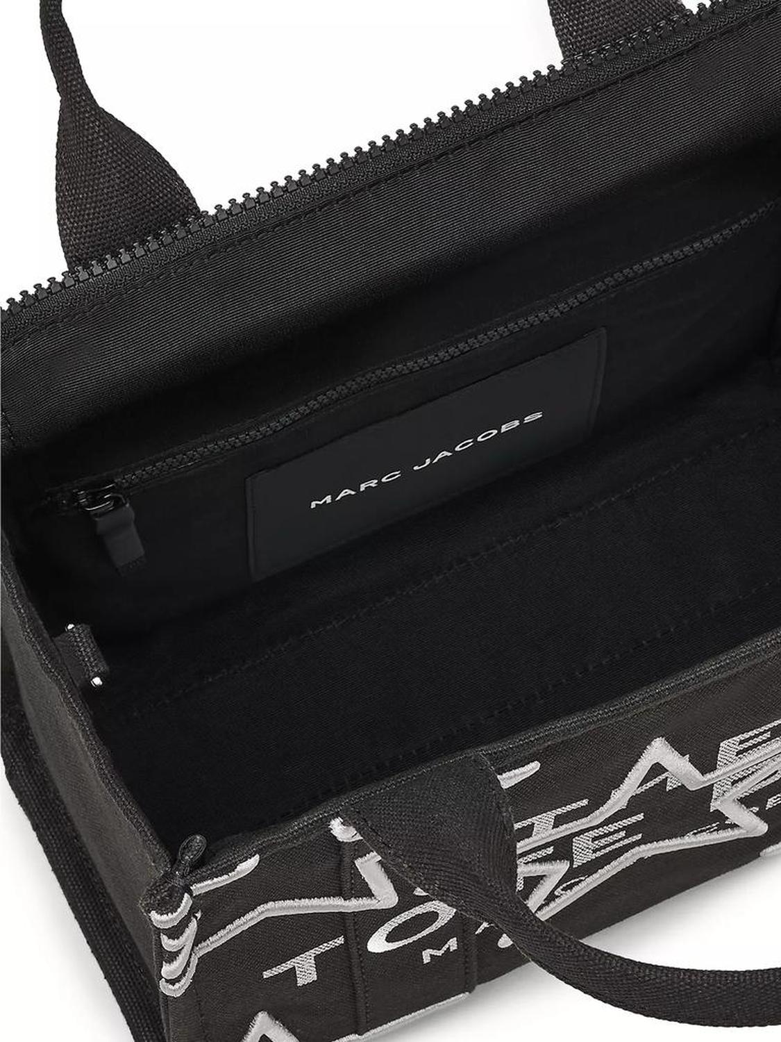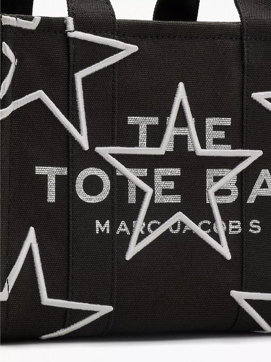 Marc Jacob's The Small Star tote bag is a versatile accessory, featuring a top handle and an adjustable, removable webbing strap. This style's top zip closure ensures belongings are safe, while the internal zip pocket provides additional storage.Two top handlesAdjustable, removable crossbody strapInterior: one zip pocketTop zip closureIncludes dust bagCottonLining: polyesterImportedSIZEAbout 10.2"W x 8.3"H x 5.3"DTwo top handles: about 4.3" dropAdjustable, removable crossbody strap: about 27" drop