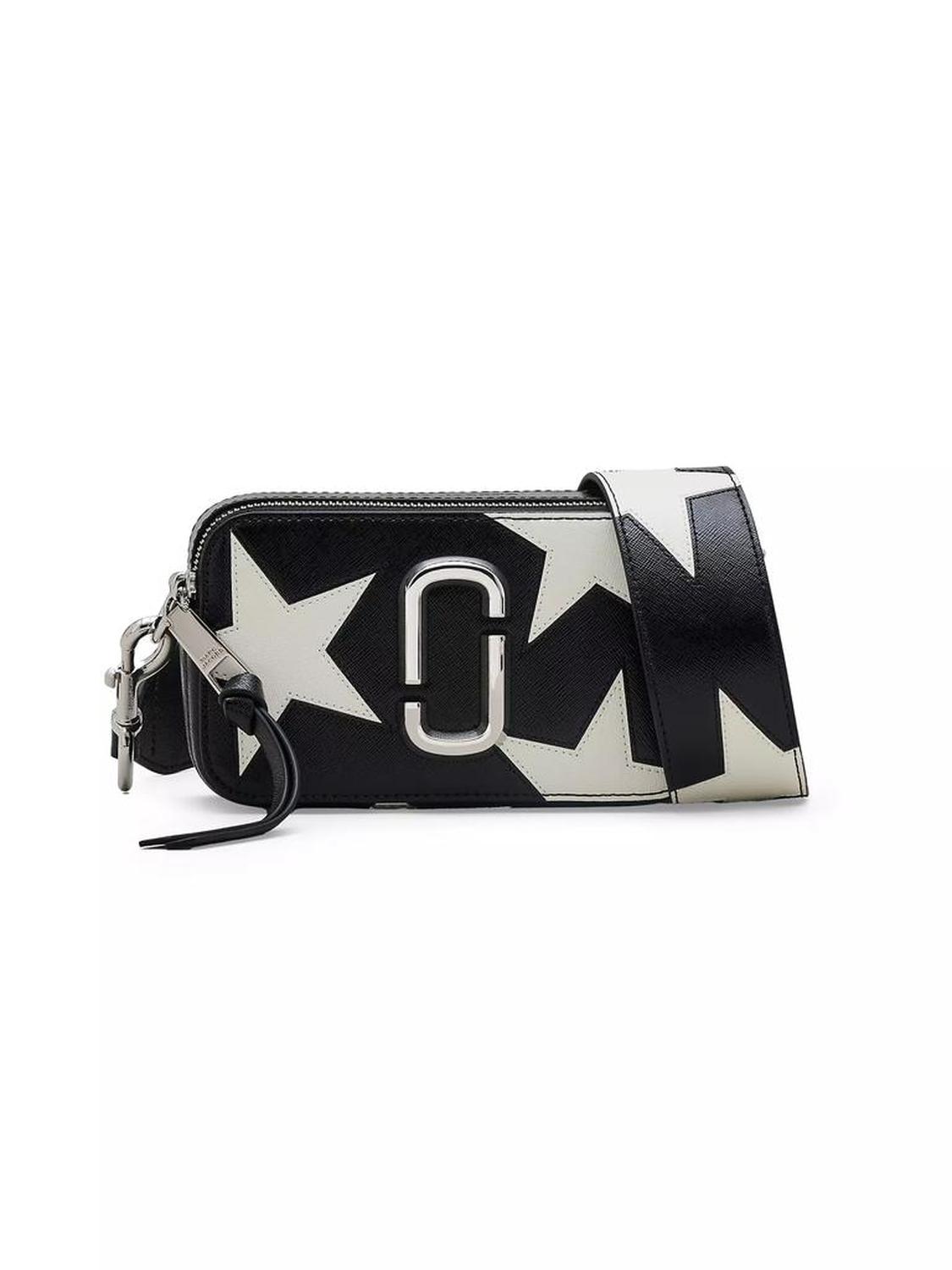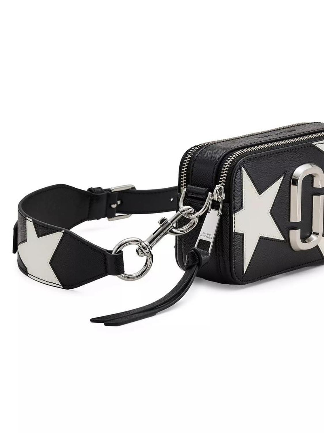 Marc Jacobs's The Snapshot is a compact accessory crafted from coated leather. This bag's star patchwork design is complemented by a removable and adjustable leather strap, and dual top zippers for easy access.Adjustable, removable crossbody strapTop zip closureIncludes dust bagLeather/polyurethaneImportedSIZEAbout 7.2"W x 4.1"H x 2.4"DAdjustable, removable crossbody strap: about 20.5"drop