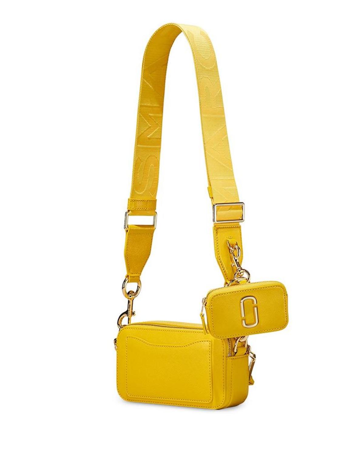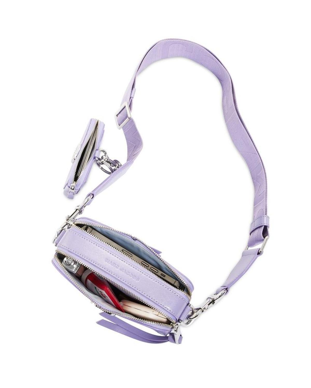 Removable adjustable webbing strap, 26.77" drop Dimensions: 7.09"W x 2.36"D x 4.13"H Dual top zipper closure One exterior slip pocket, two interior compartments, one interior slip pocket Detachable zip pouch with d-ring Coated leather, lining: polyester Imported Web ID: 4728356