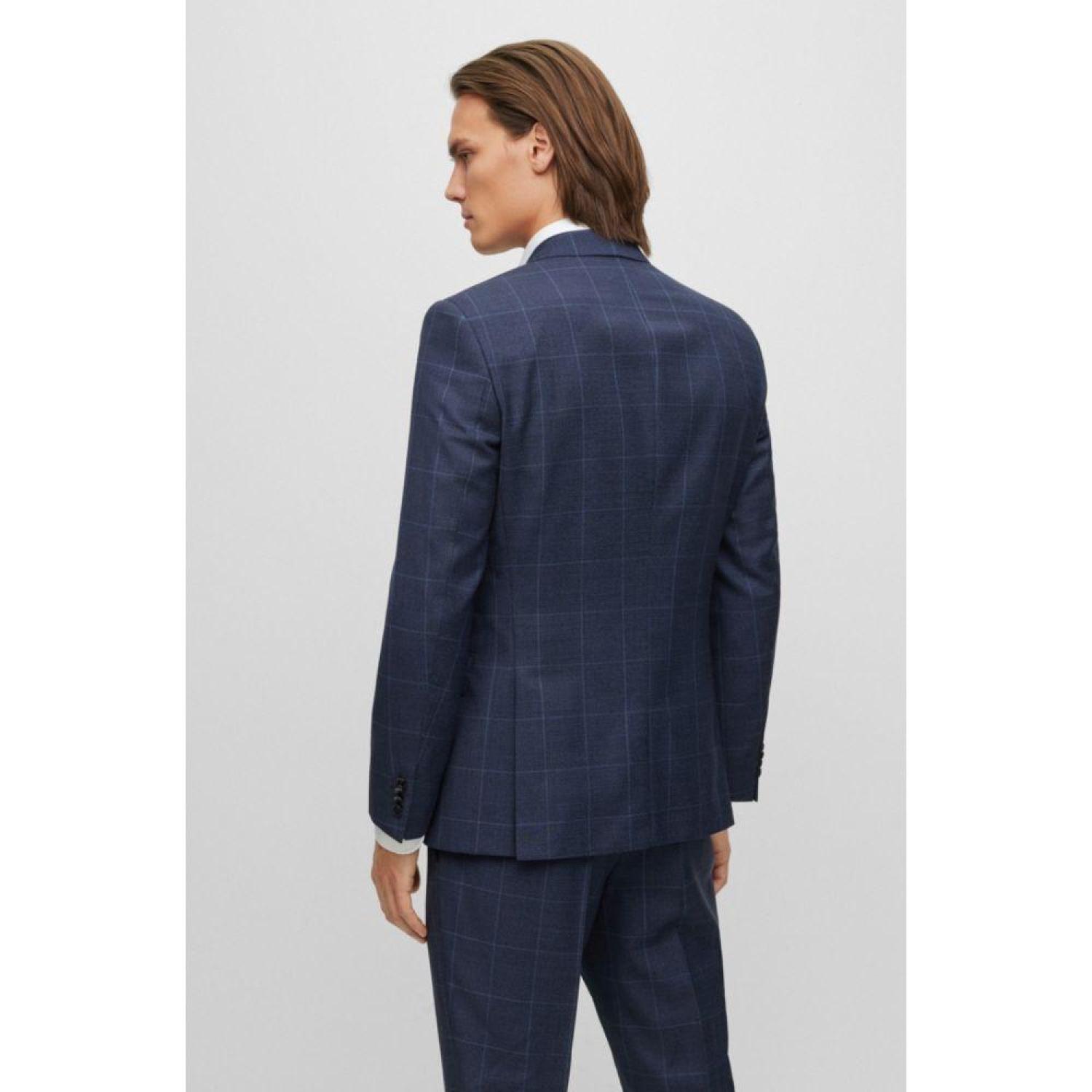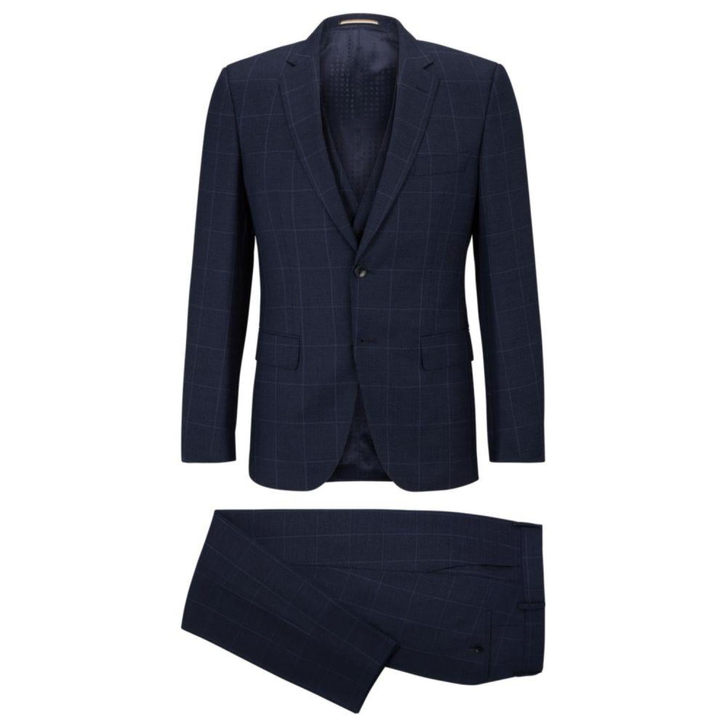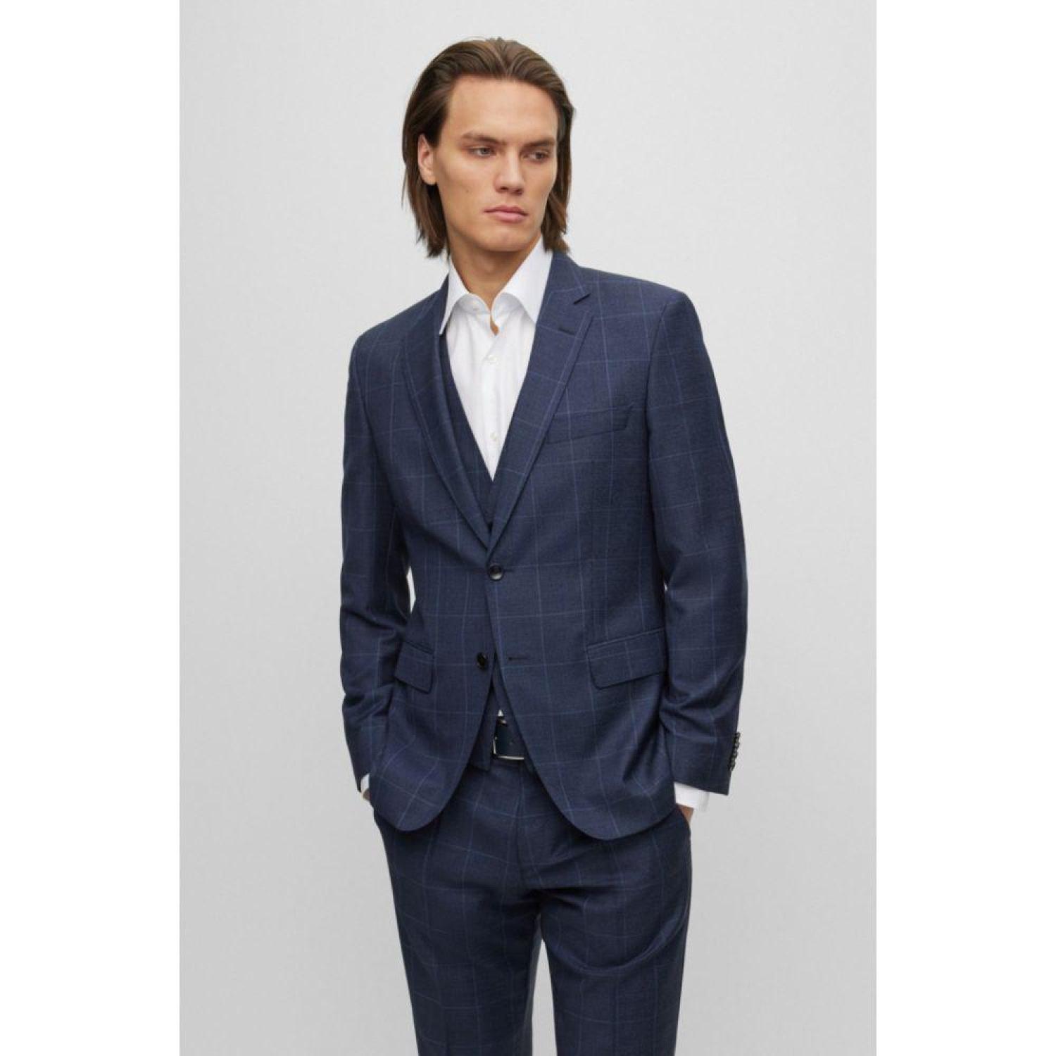 An elegant three-piece suit by BOSS Menswear, tailored to a slim fit and patterned with a plain check. This product is made with wool.