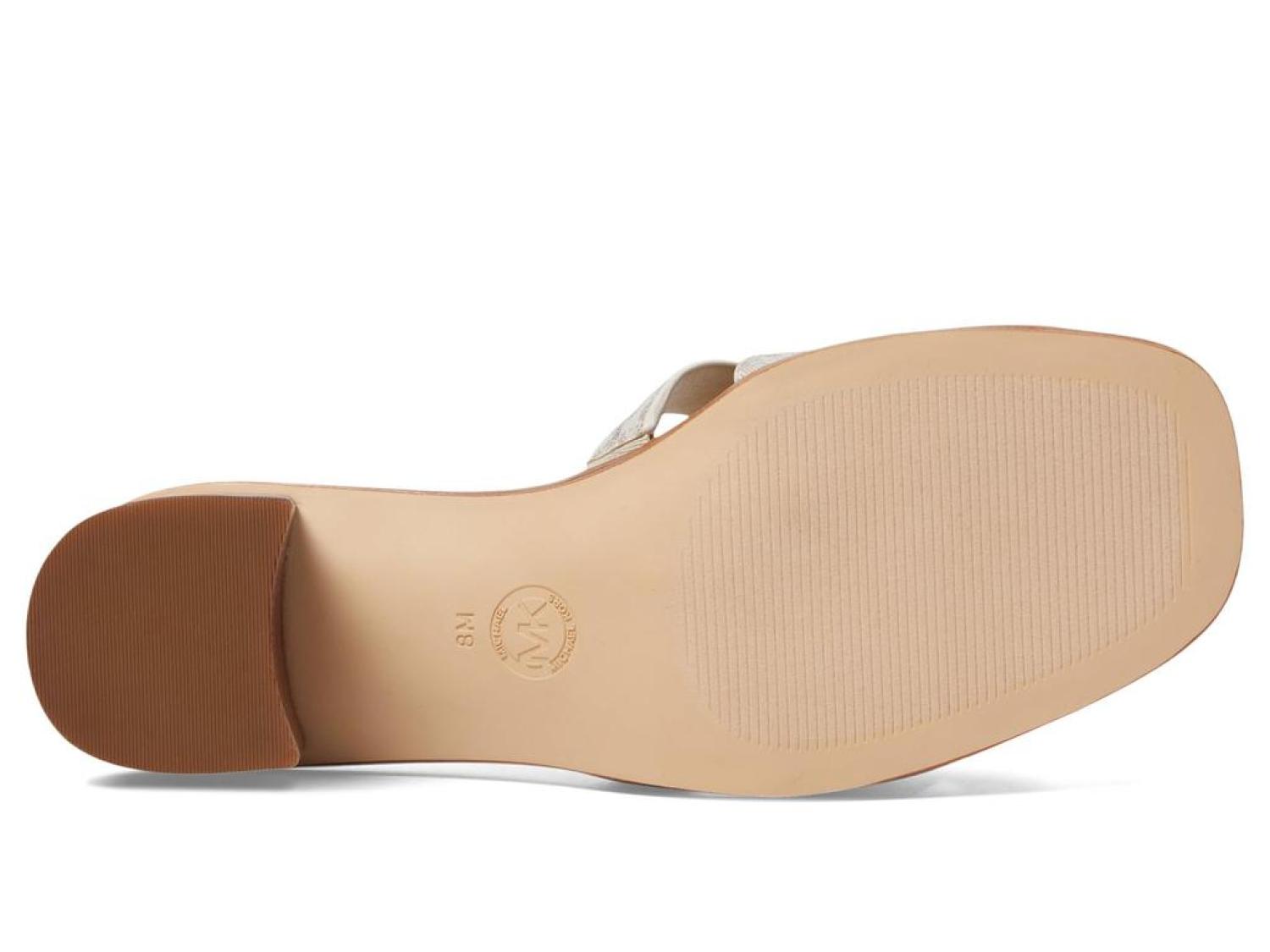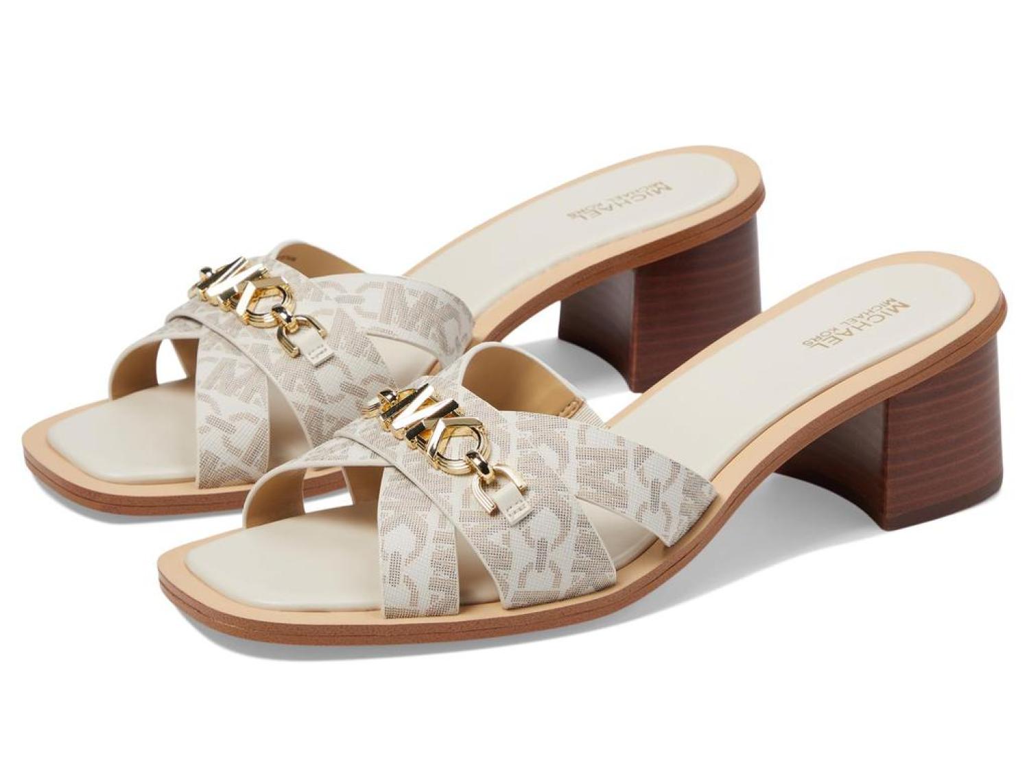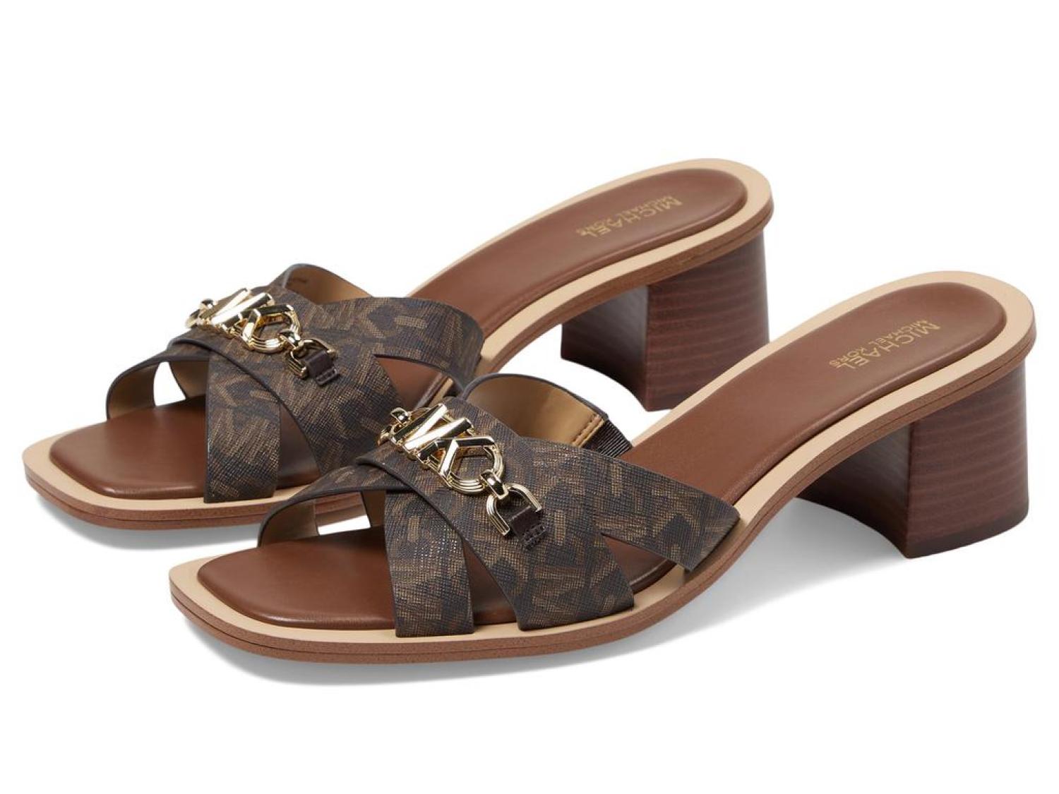 • Complement your chic style in the MICHAEL Michael Kors® Tiffanie Mid Sandal. These slip-on sandals feature a square open toe silhouette with empire chain hardware on the upper and a padded footbed for lasting comfort.