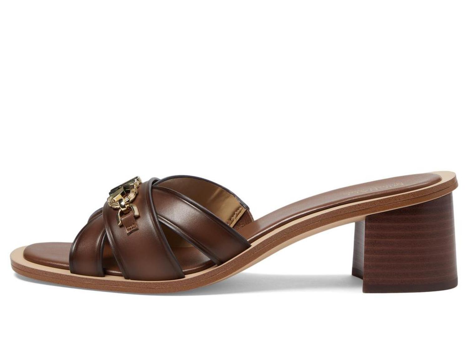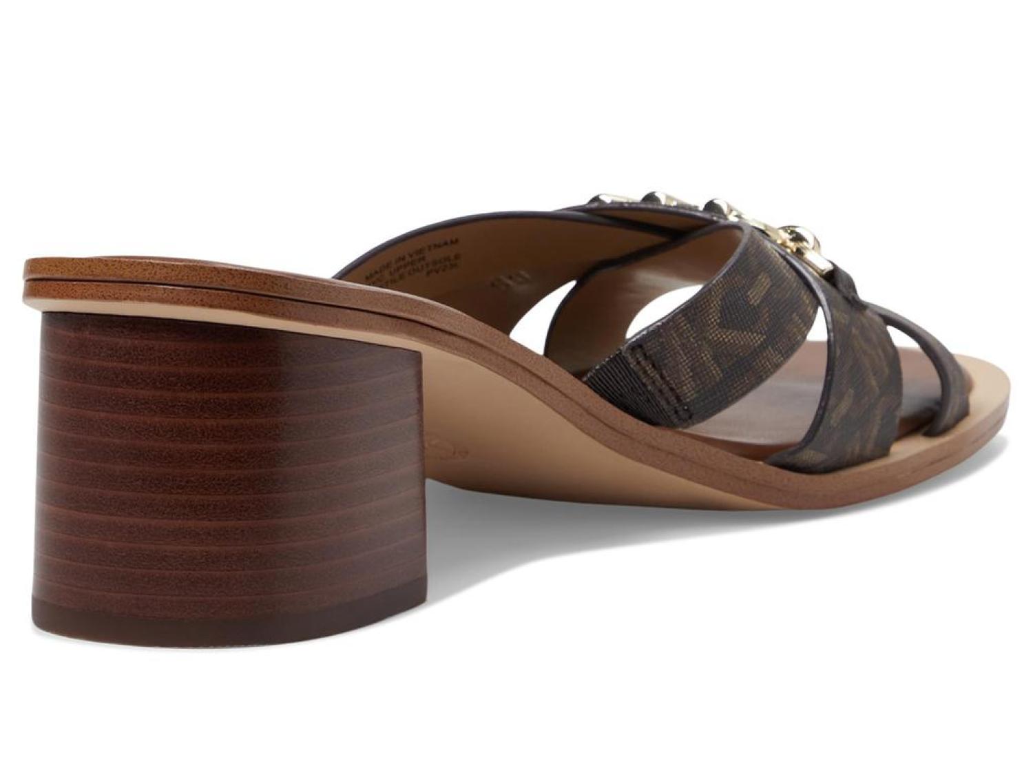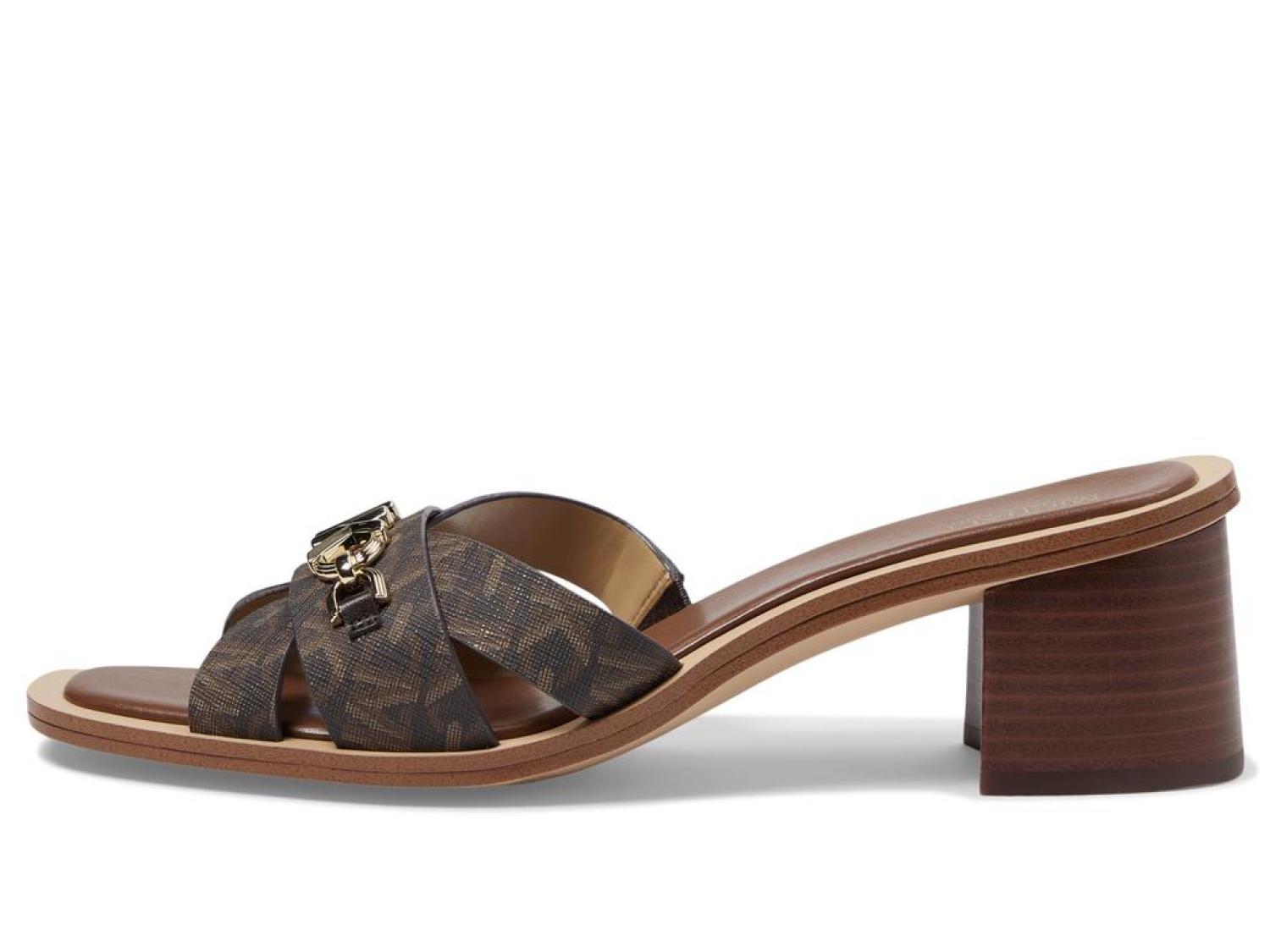 • Complement your chic style in the MICHAEL Michael Kors® Tiffanie Mid Sandal. These slip-on sandals feature a square open toe silhouette with empire chain hardware on the upper and a padded footbed for lasting comfort.