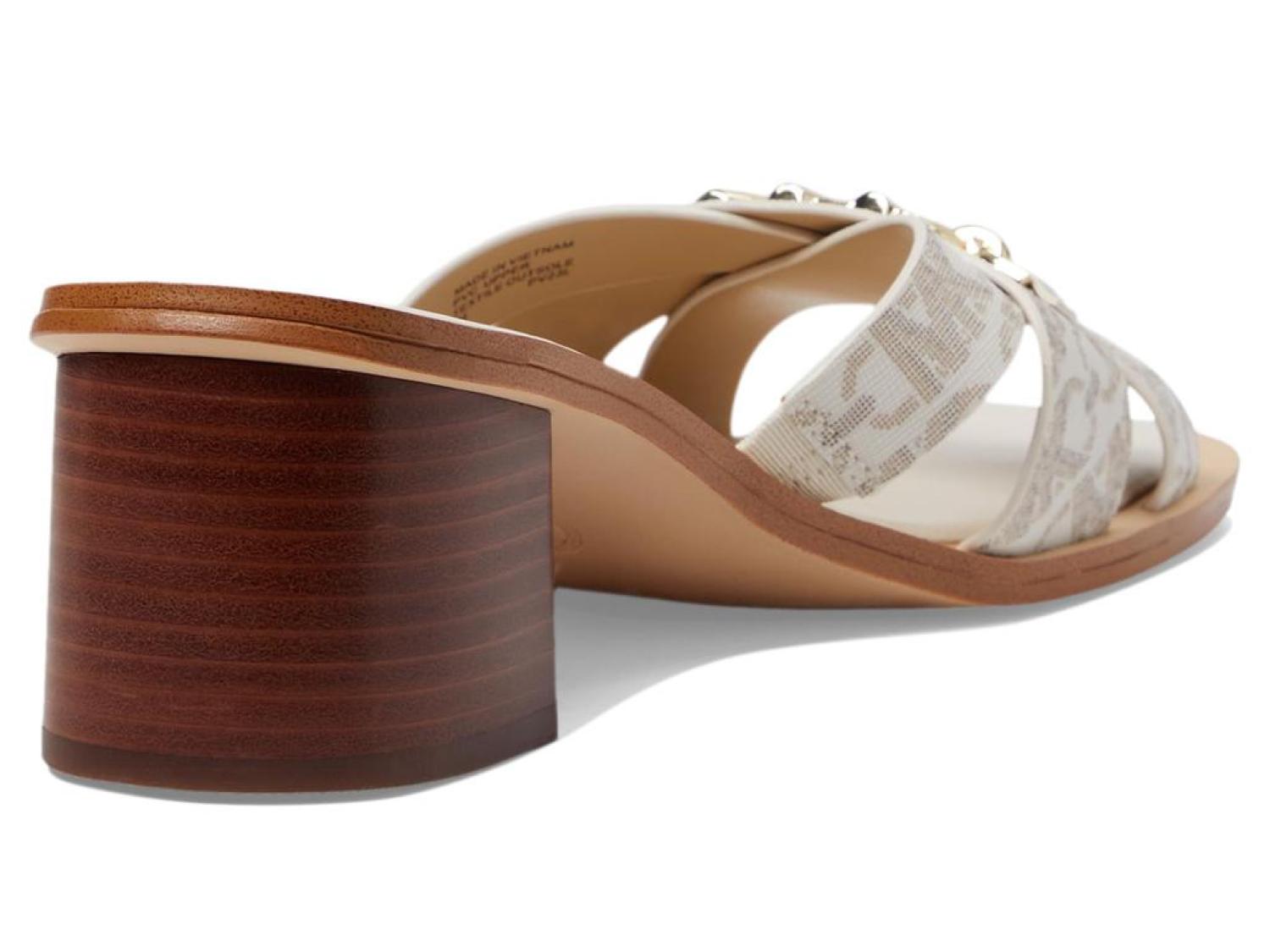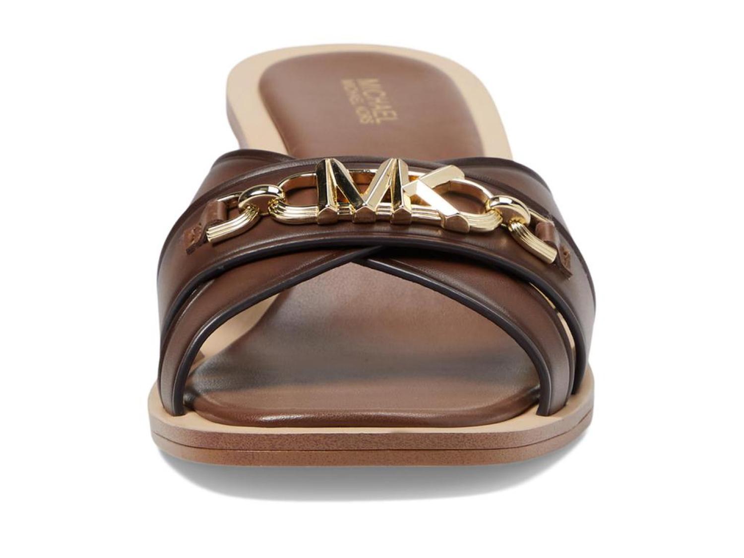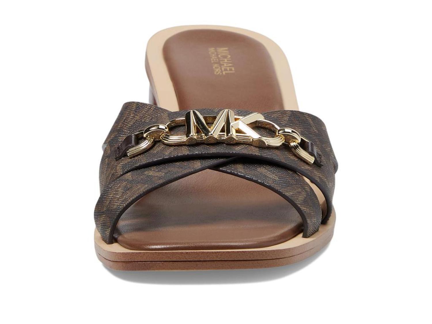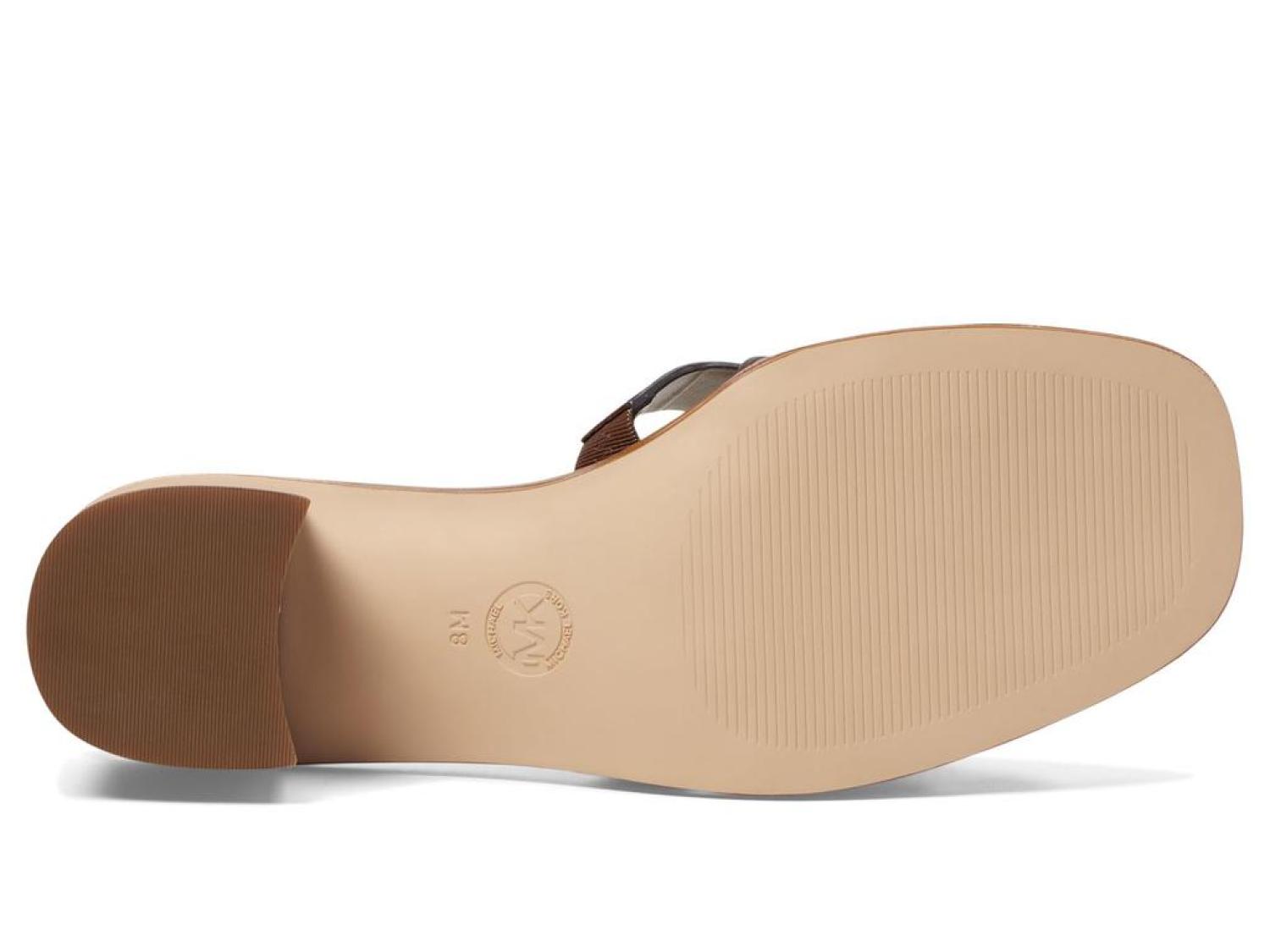 Complement your chic style in the MICHAEL Michael Kors® Tiffanie Mid Sandal. These slip-on sandals feature a square open toe silhouette with empire chain hardware on the upper and a padded footbed for lasting comfort.