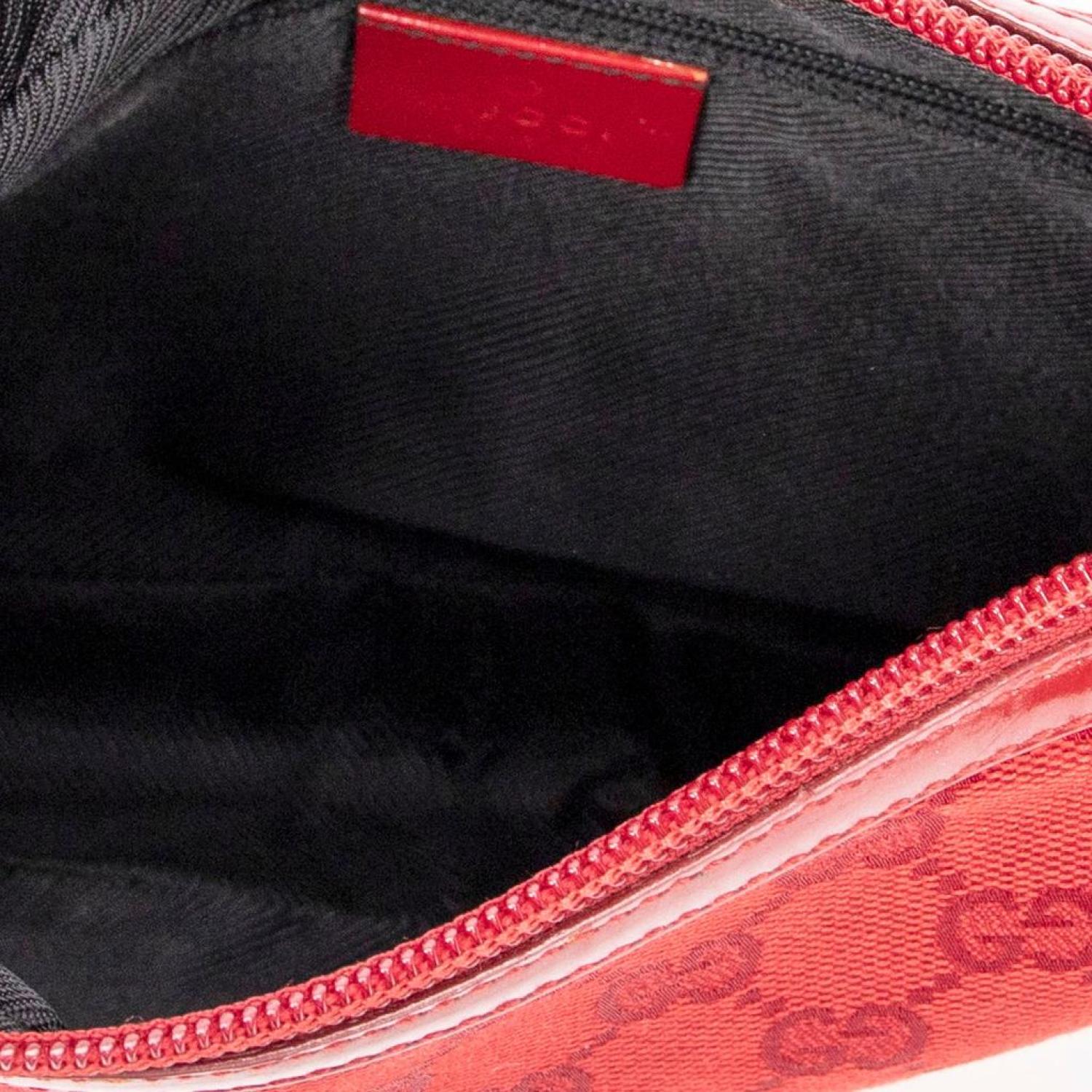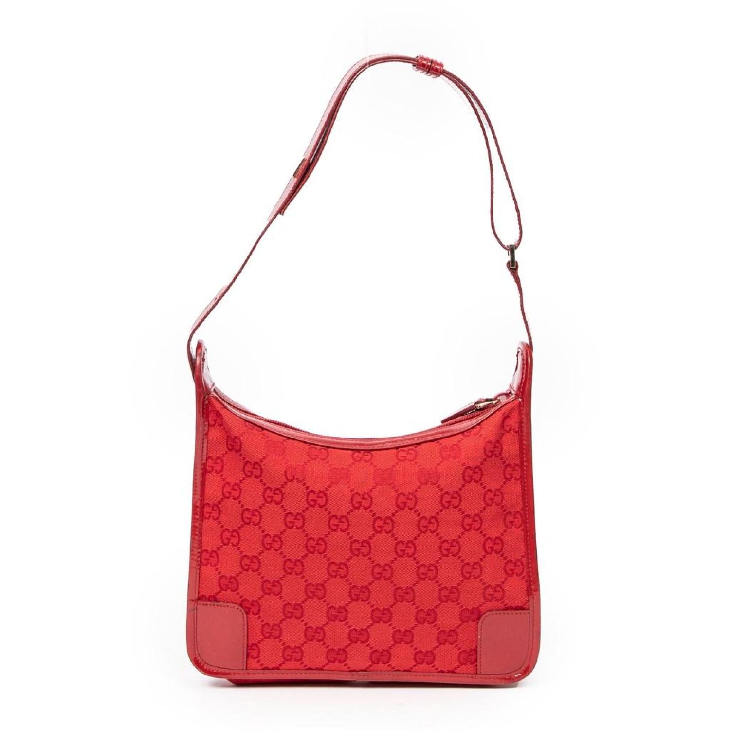 - Gucci Shoulder Bag in Red Monogrammed Canvas/Patent Leather and Gold hardware. Dimensions - 24*18*4cm. Serial number - 001.4206 001013. Inclusions - None. Pre-Owned