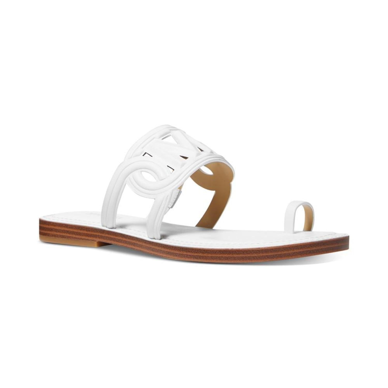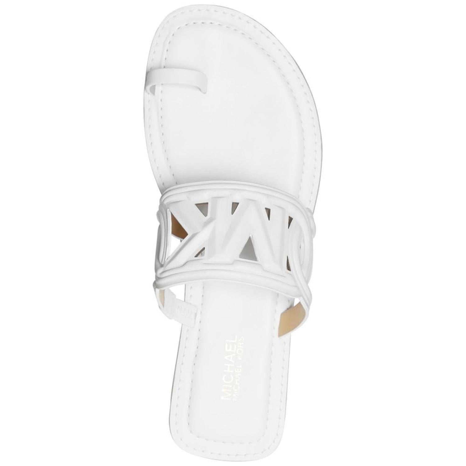 A catchy cutout logo design and slim toe loop top off the flat-out fabulous look of these Alma slip-on sandals from MICHAEL Michael Kors.
