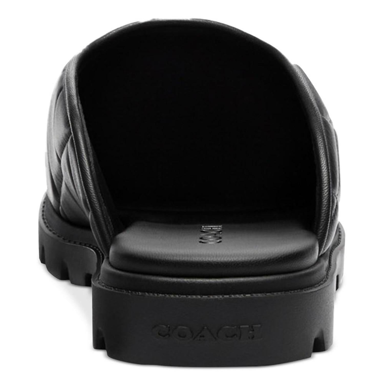 All-day comfort is brought together with cool style in the fashioning of these quilted leather mules by COACH.