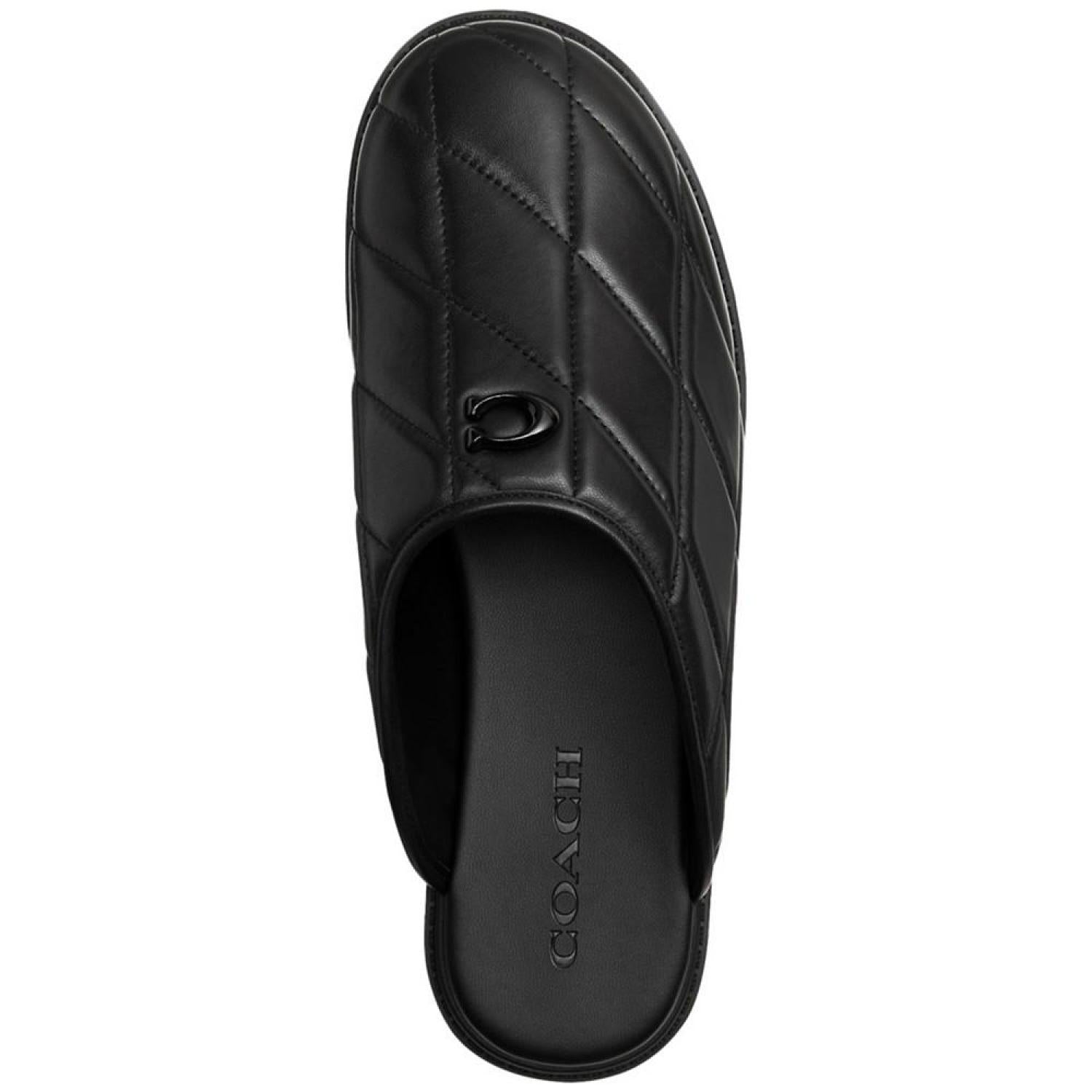 • All-day comfort is brought together with cool style in the fashioning of these quilted leather mules by COACH.