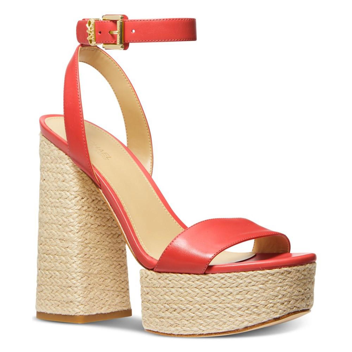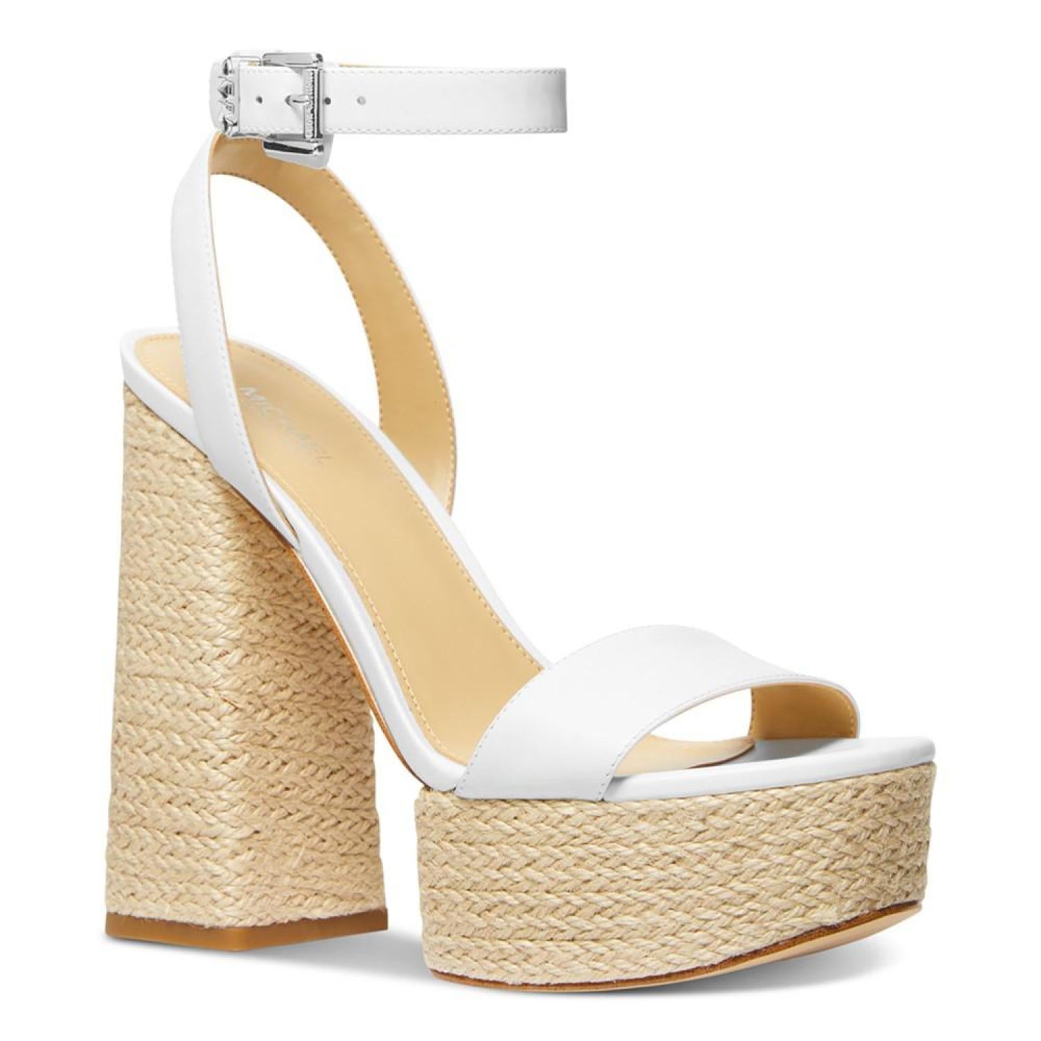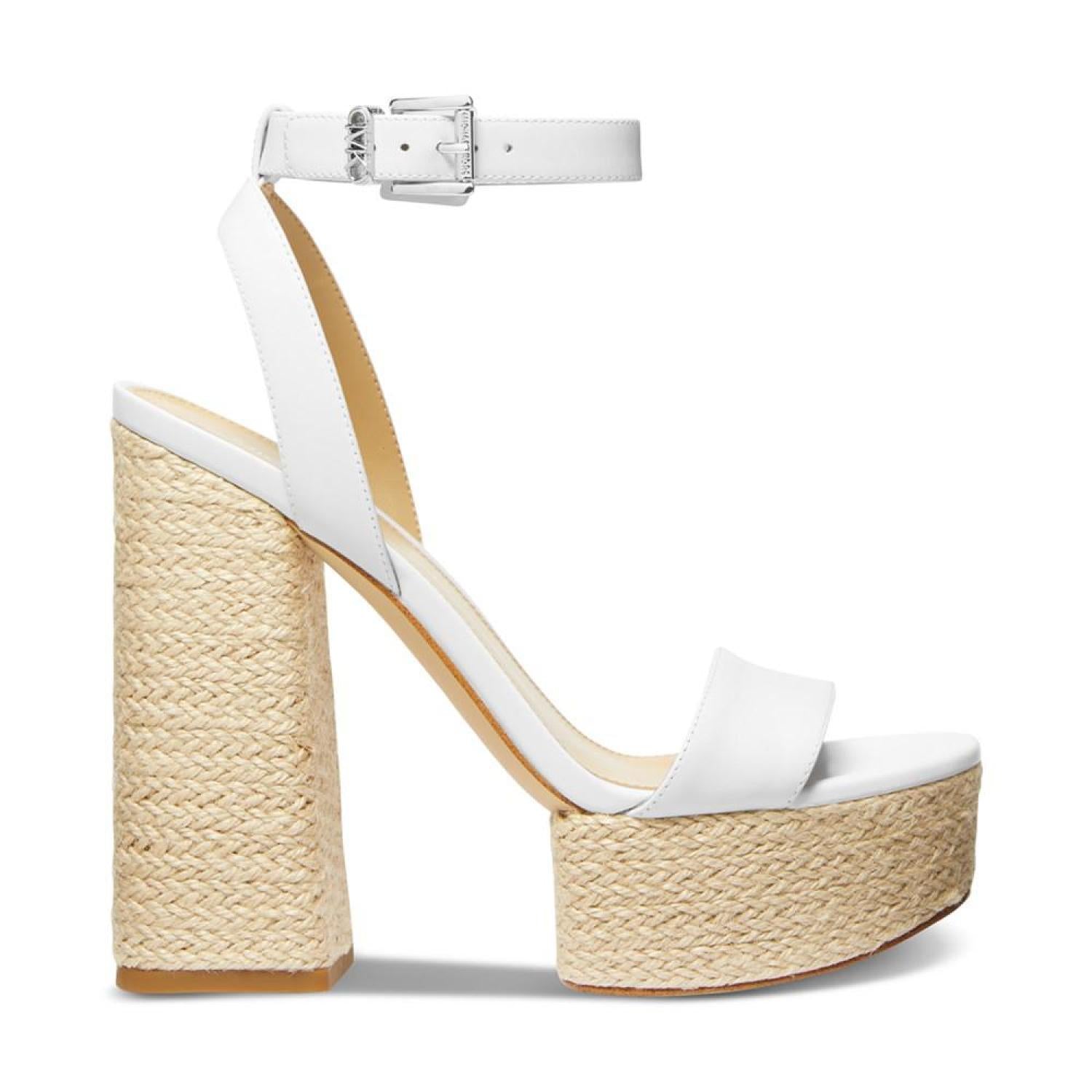 • Fulfilling a tall order with jute-covered platforms and block heels, the Ashton ankle-strap sandals stride with the chic style of MICHAEL Michael Kors.