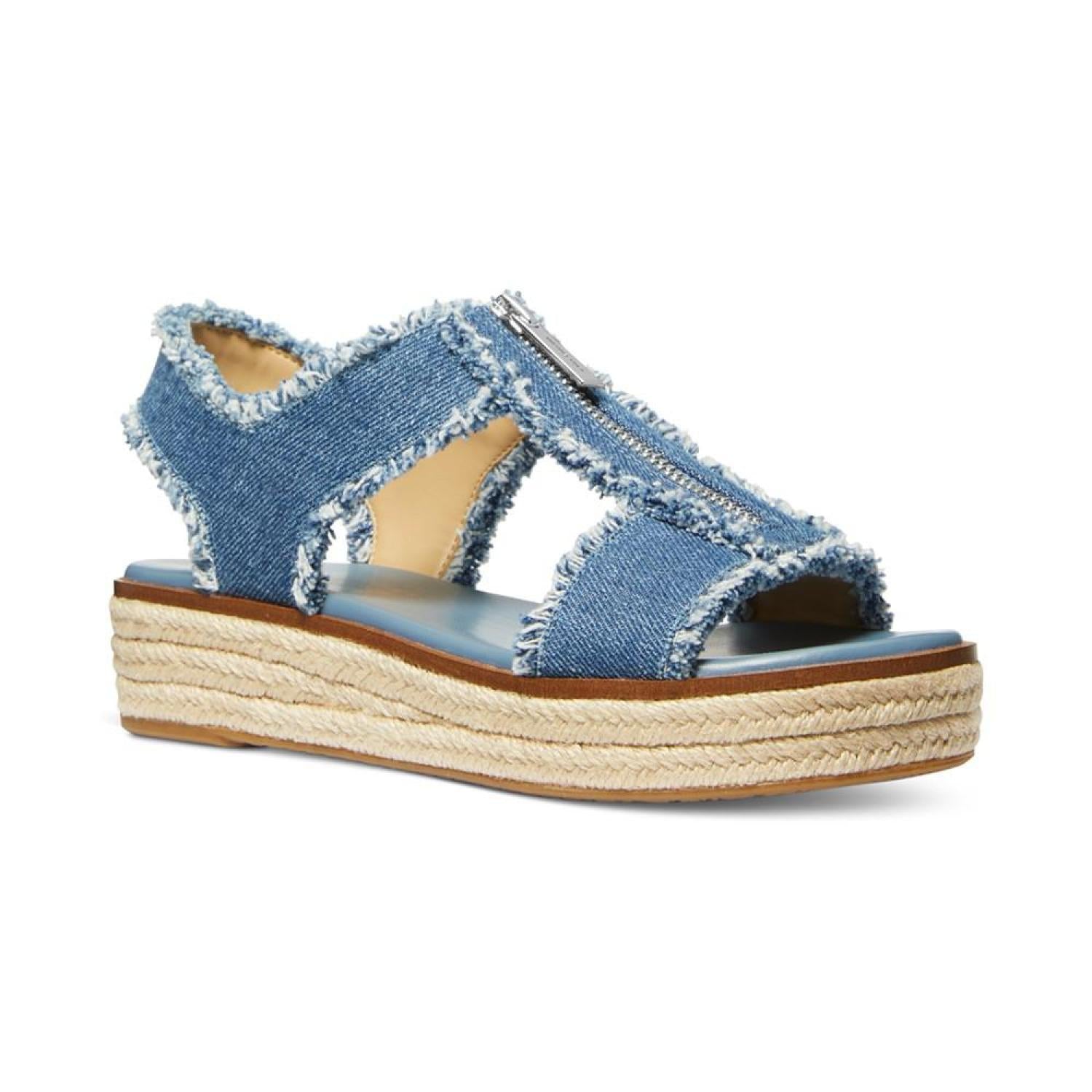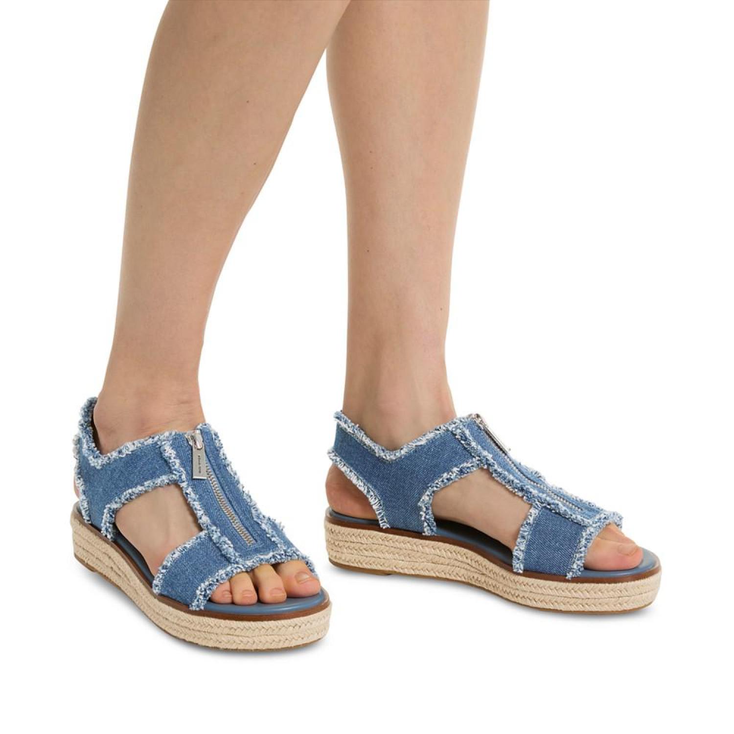 Casual fraying pairs with exposed zips for a striking casual accent to warm-weather style in the Berkley platform sandals from MICHAEL Michael Kors.