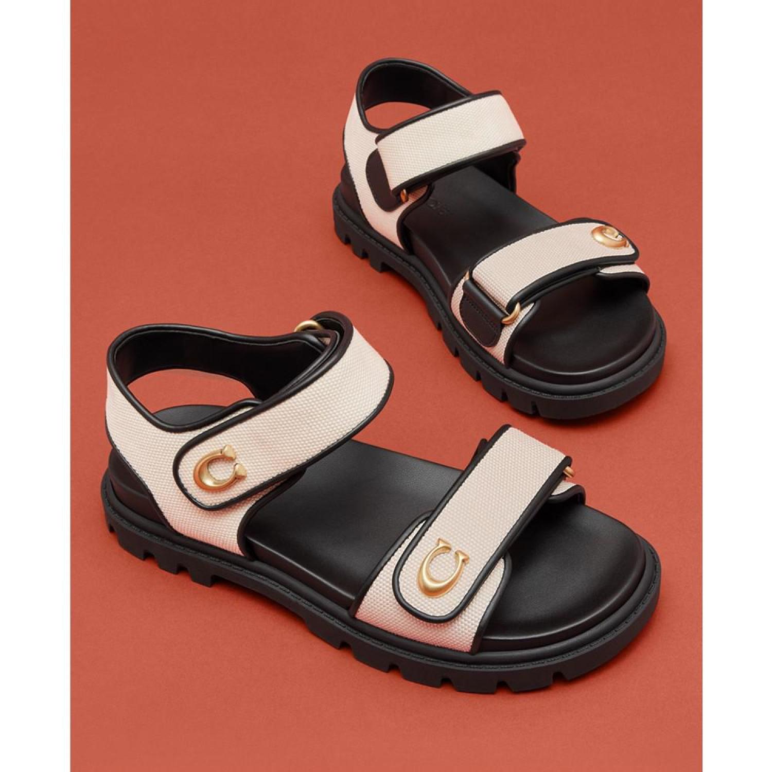 • Sporting lug soles, the Brynn double-band sandals feature signature touches of COACH at the adjustable double bands.
