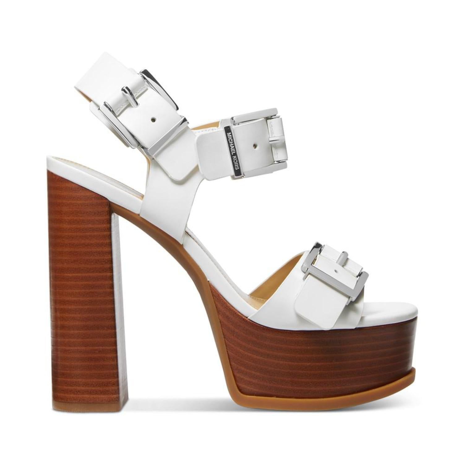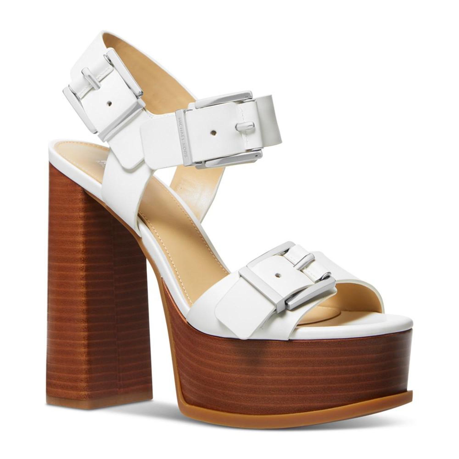 An abundance of buckles partner with assertive block heels and platforms to deliver the smart style of the Colby sandals from MICHAEL Michael Kors.