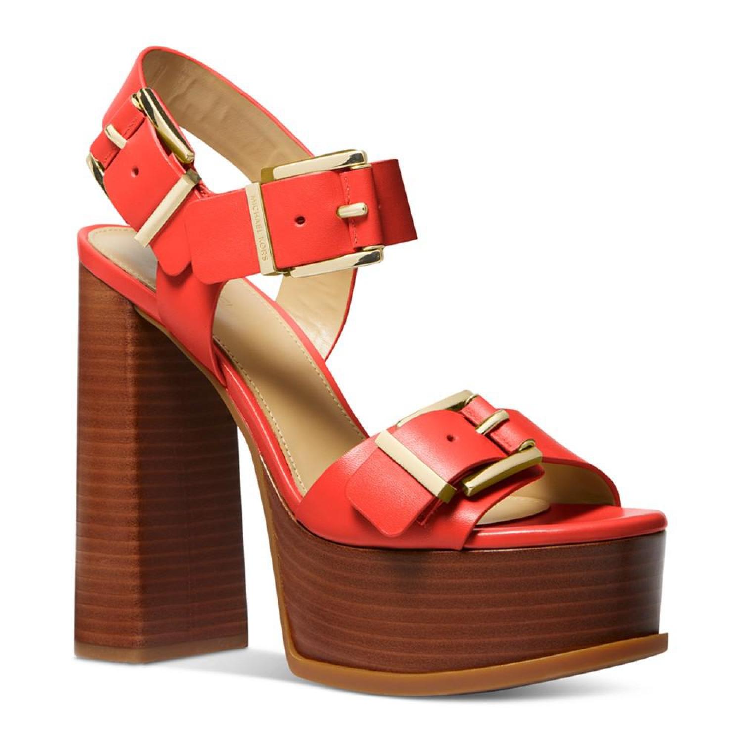 • An abundance of buckles partner with assertive block heels and platforms to deliver the smart style of the Colby sandals from MICHAEL Michael Kors.
