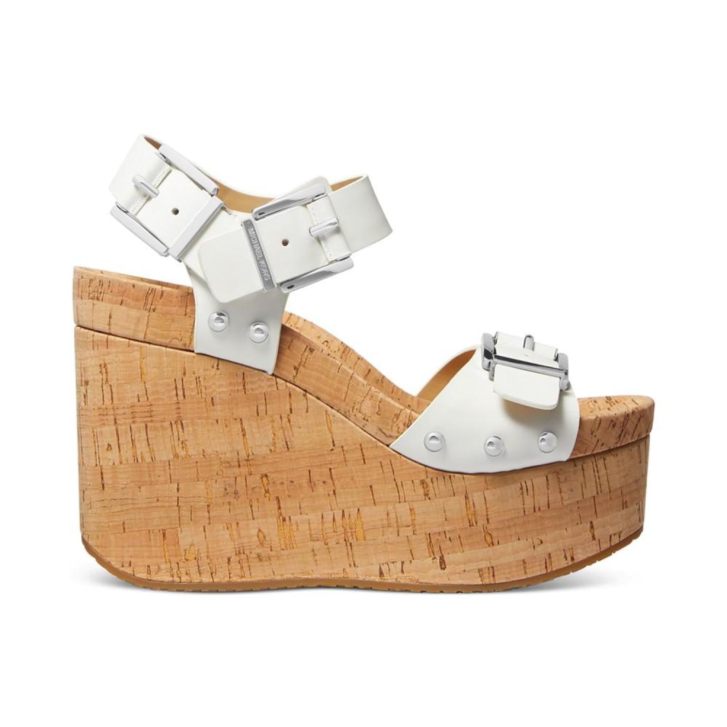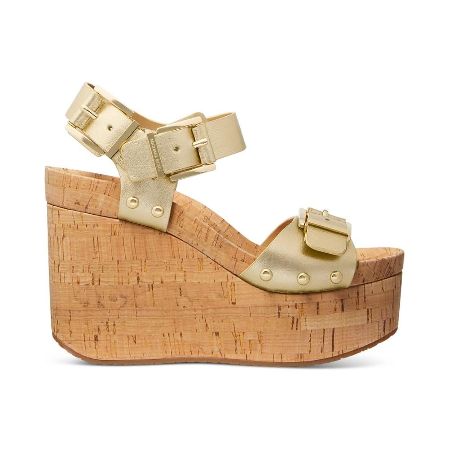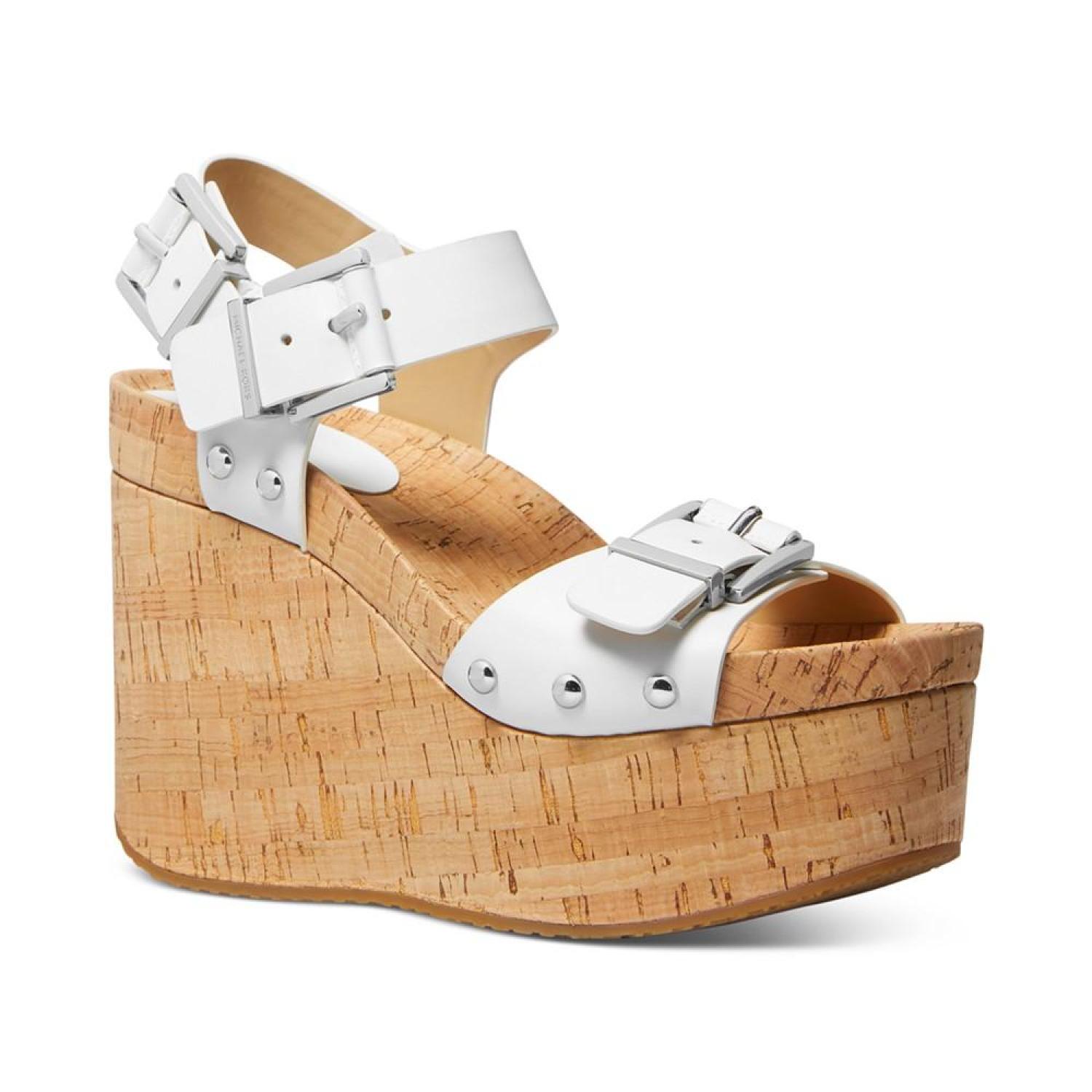 • Bunches of buckles and shiny studs top off the lofty cork-covered platforms of the Colby sandals from MICHAEL Michael Kors.