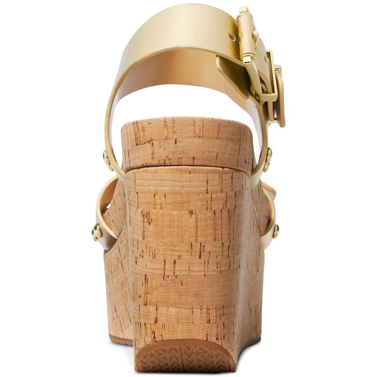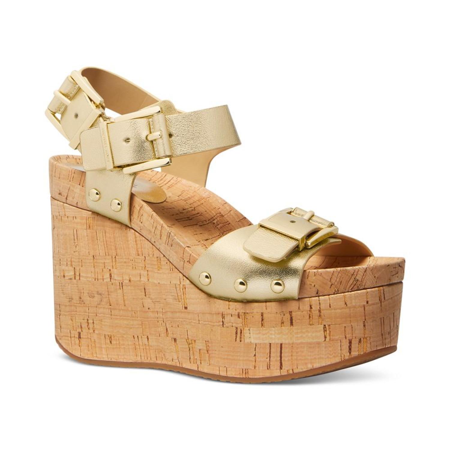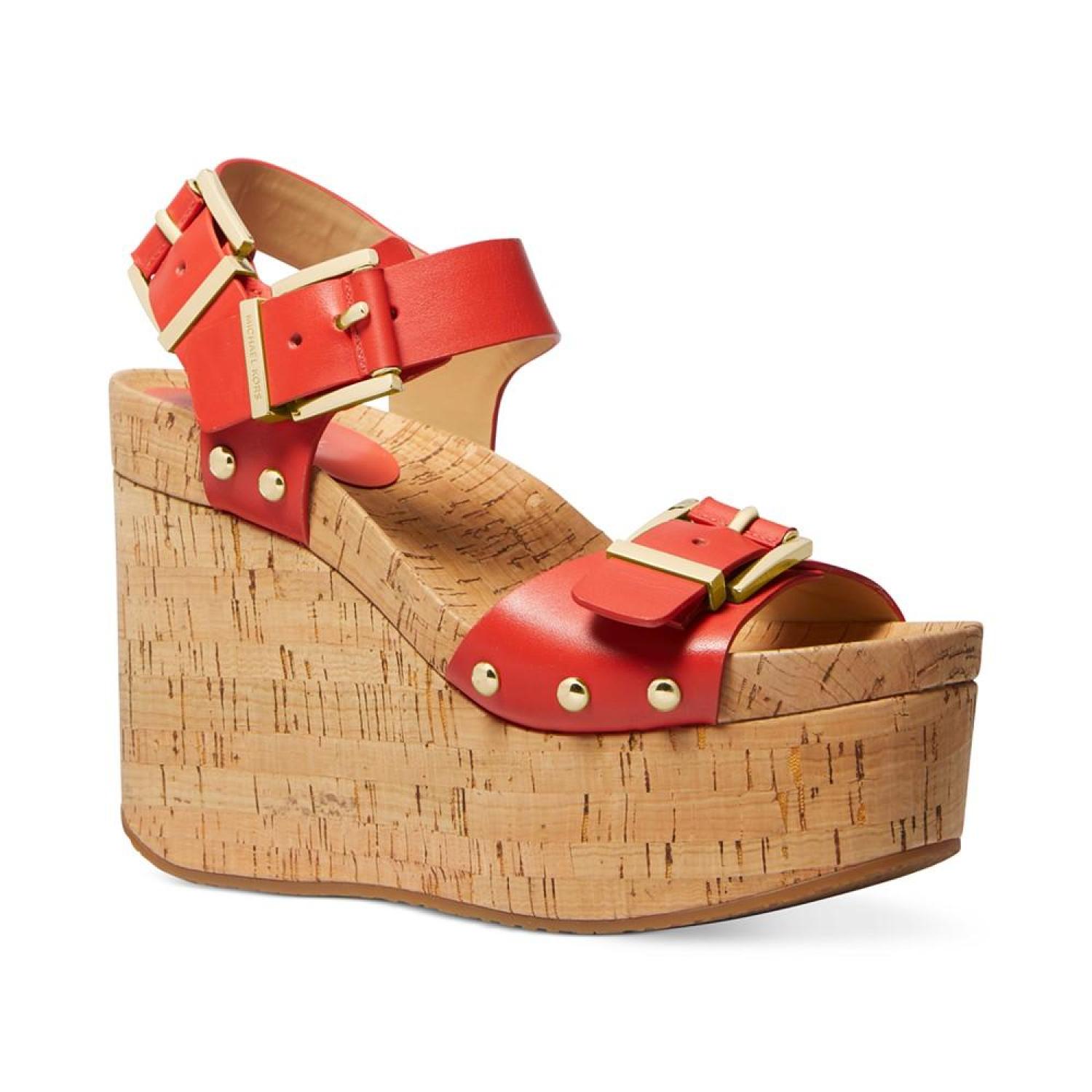 • Bunches of buckles and shiny studs top off the lofty cork-covered platforms of the Colby sandals from MICHAEL Michael Kors.