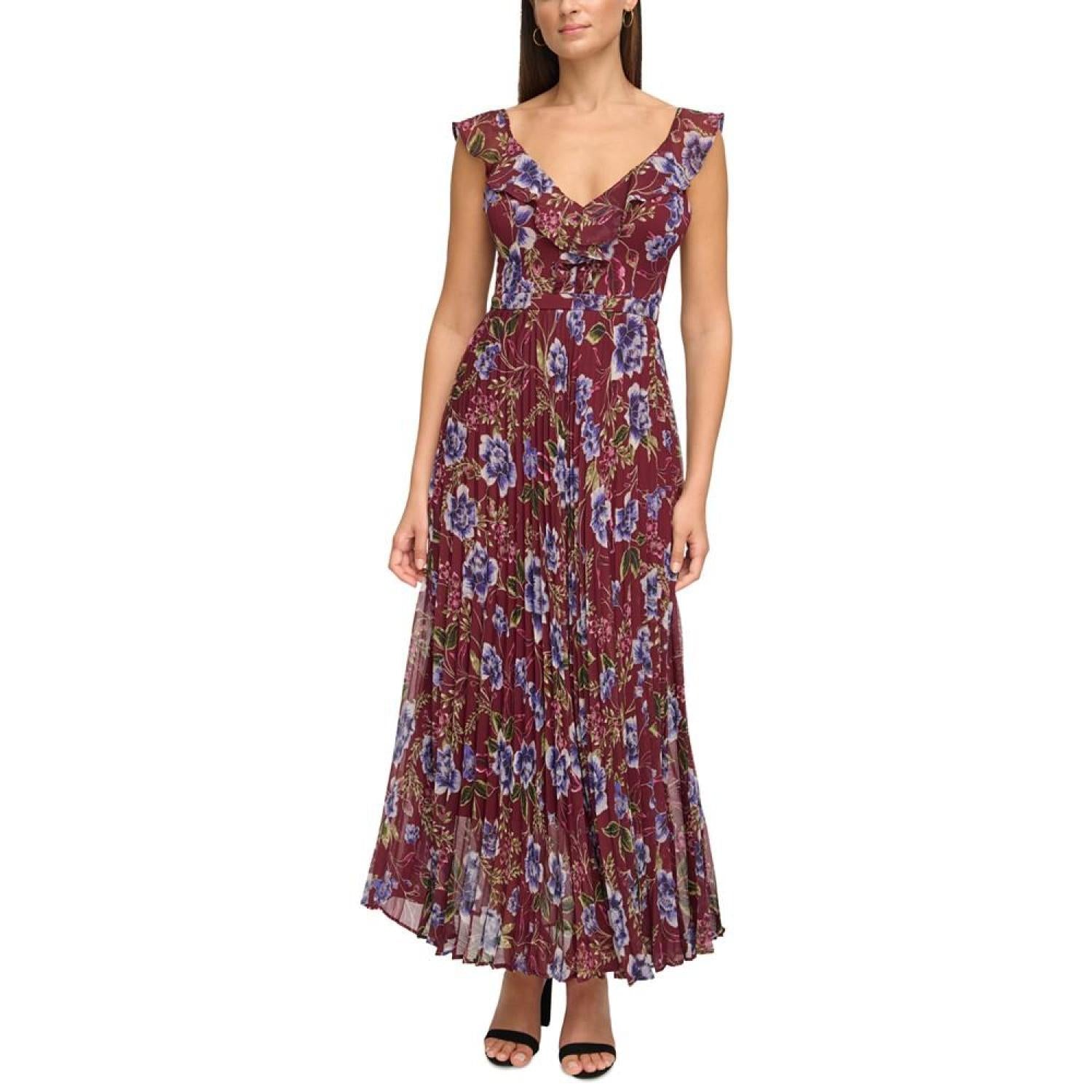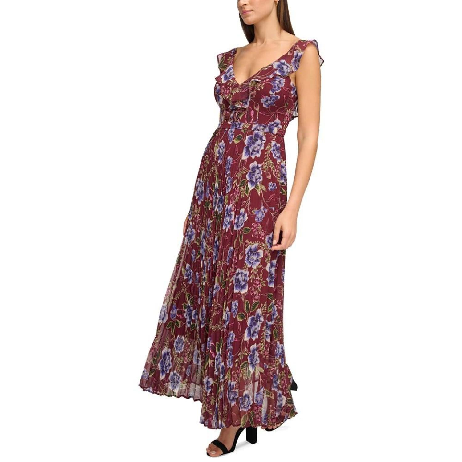 Women's Floral-Print Pleated Ruffled Maxi Dress