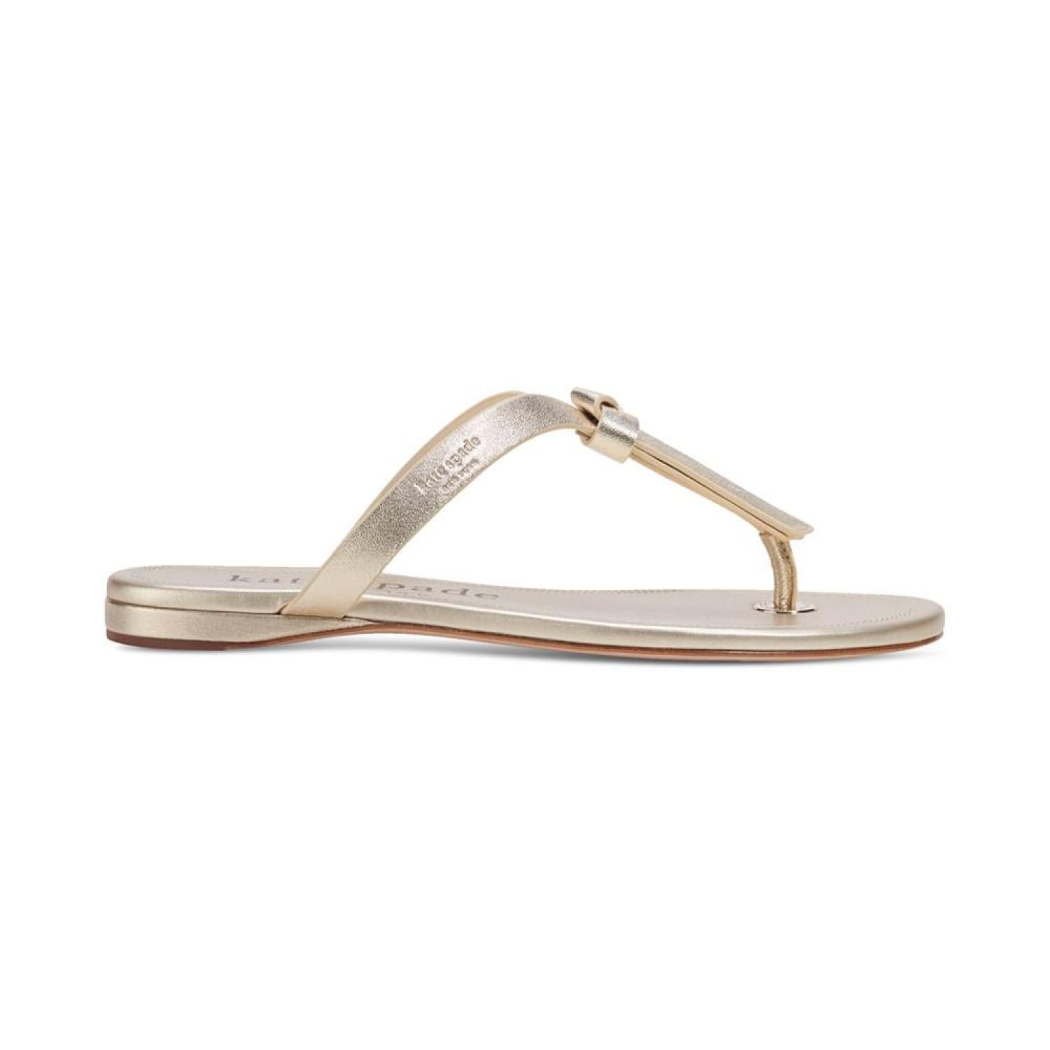 • Understated with a twist, the Knott sandals from Kate Spade New York slip on with thong toes and slender straps.