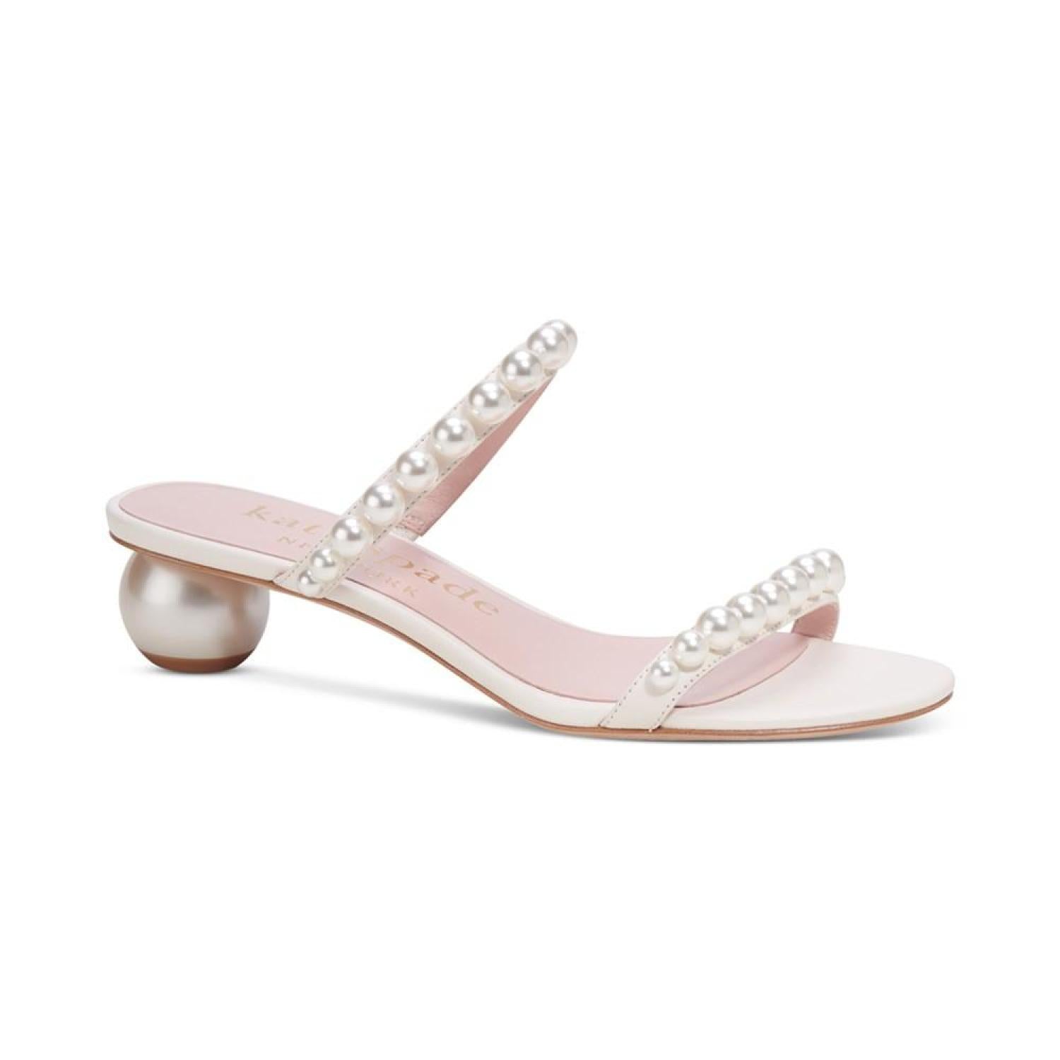 Pretty imitation pearl beads embellish elegant straps and sculpted heels for a gorgeous go-to in the Kate Spade New York Palm Springs sandals.