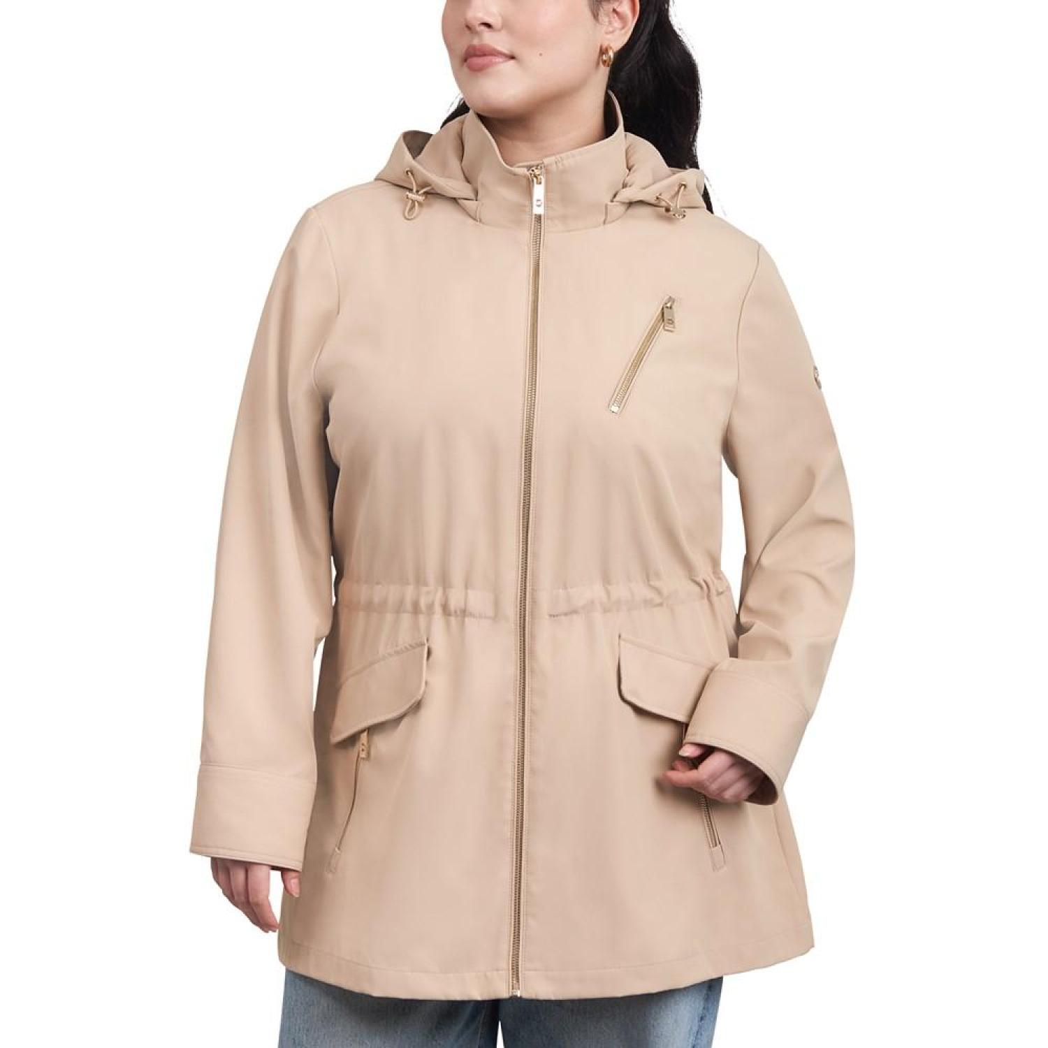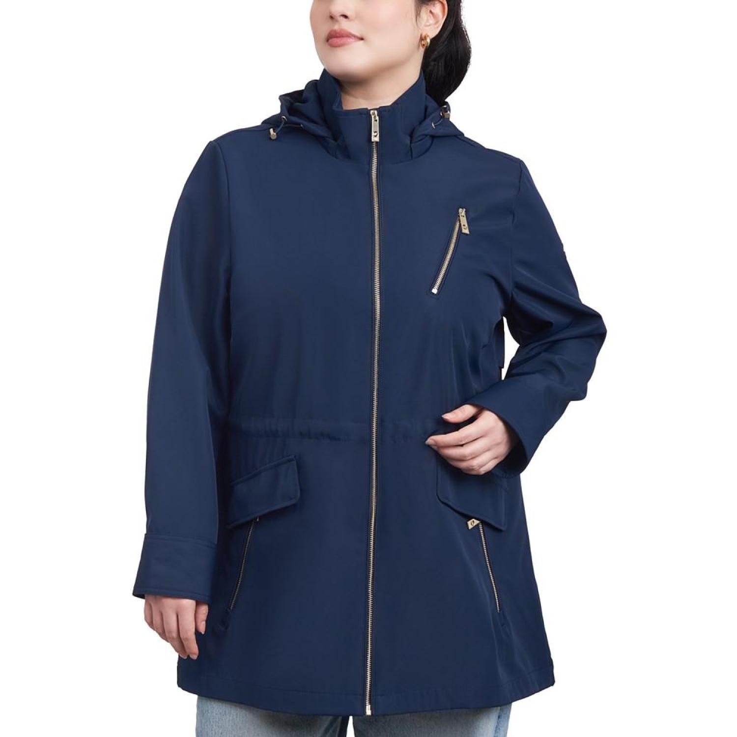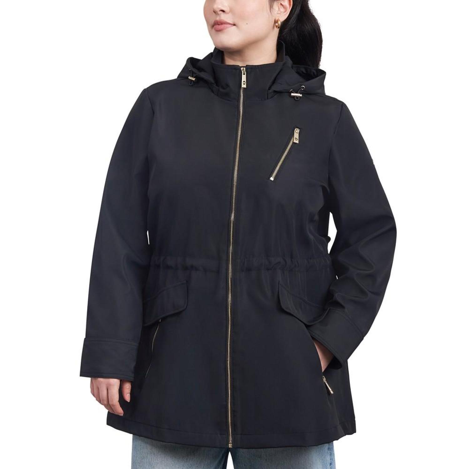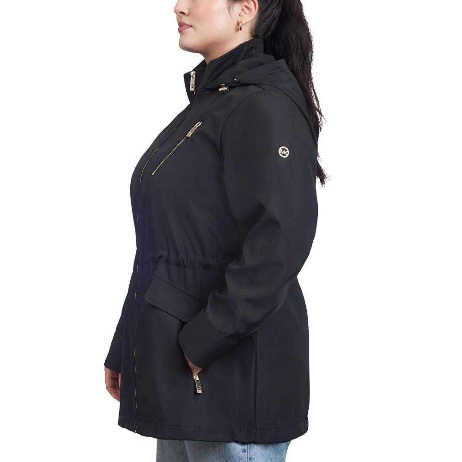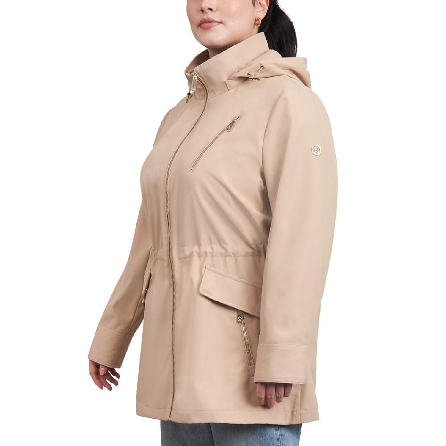 Plenty of pockets and a water-resistant finish bring convenience and style to this plus size anorak coat from MICHAEL Michael Kors. Approx. model height is 5'7" and she is wearing a size 2X Approx. 31-1/2" long from center back to hem Stand collar with zip-off hood; front zipper closure Cinched at waist Zipper pocket at chest; two flap pockets at waist Water resistant Lined Shell & lining: polyester Machine wash or dry clean Imported