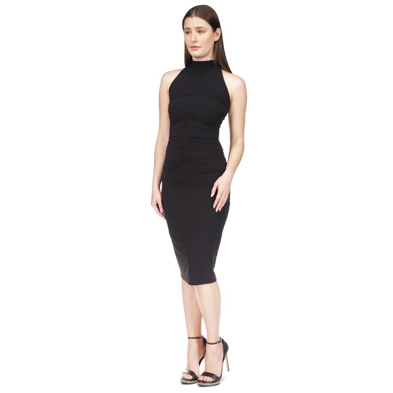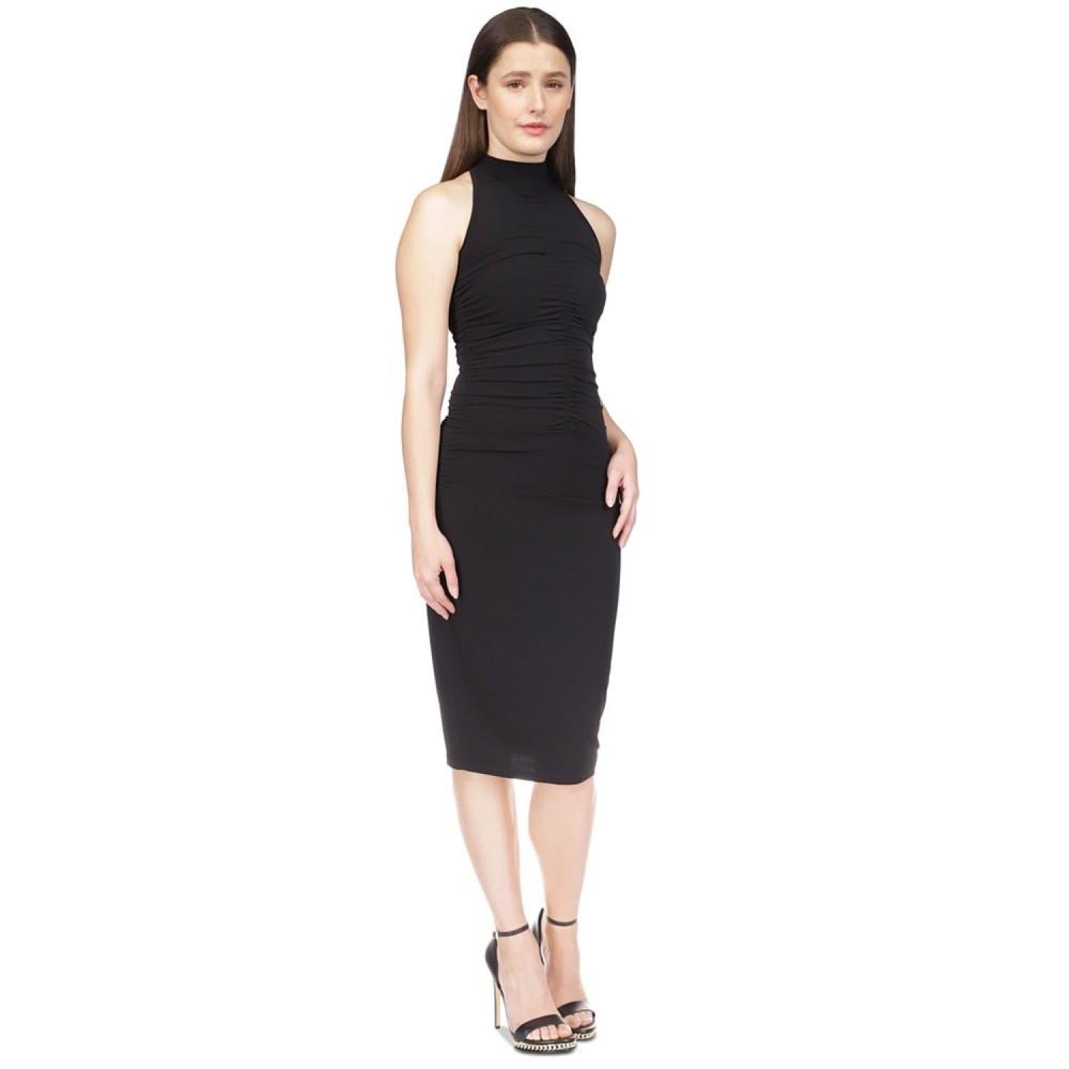 Women's Ruched Mock-Neck Sleeveless Midi Dress