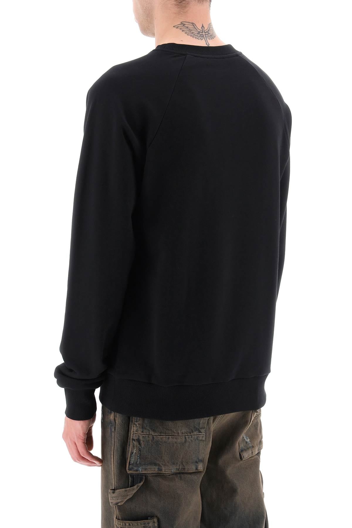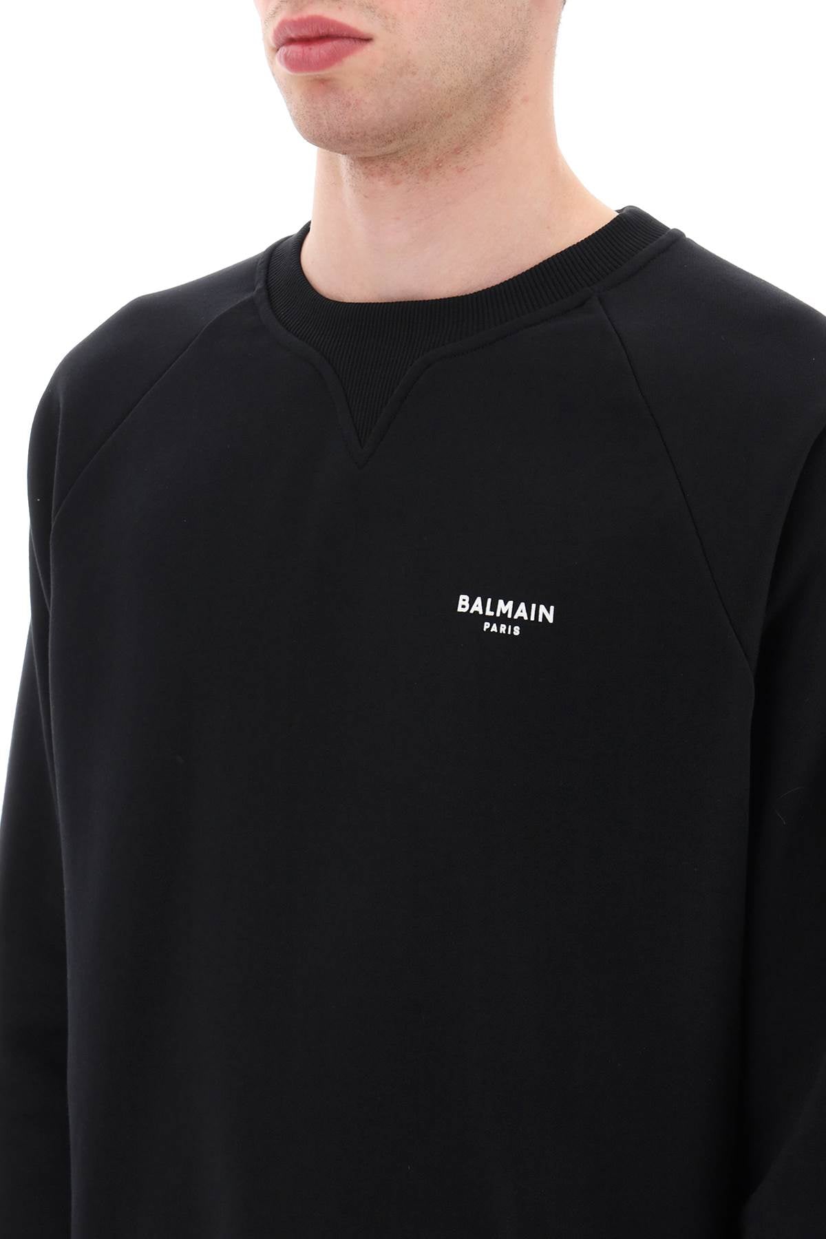 Balmain sweatshirt crafted in pure cotton french terry. Characterized by contrasting flocked logo on the chest, this garment features ribbed crew-neck, cuffs and hem. Relaxed fit with raglan sleeves. The model is 187 cm tall and wears size L.