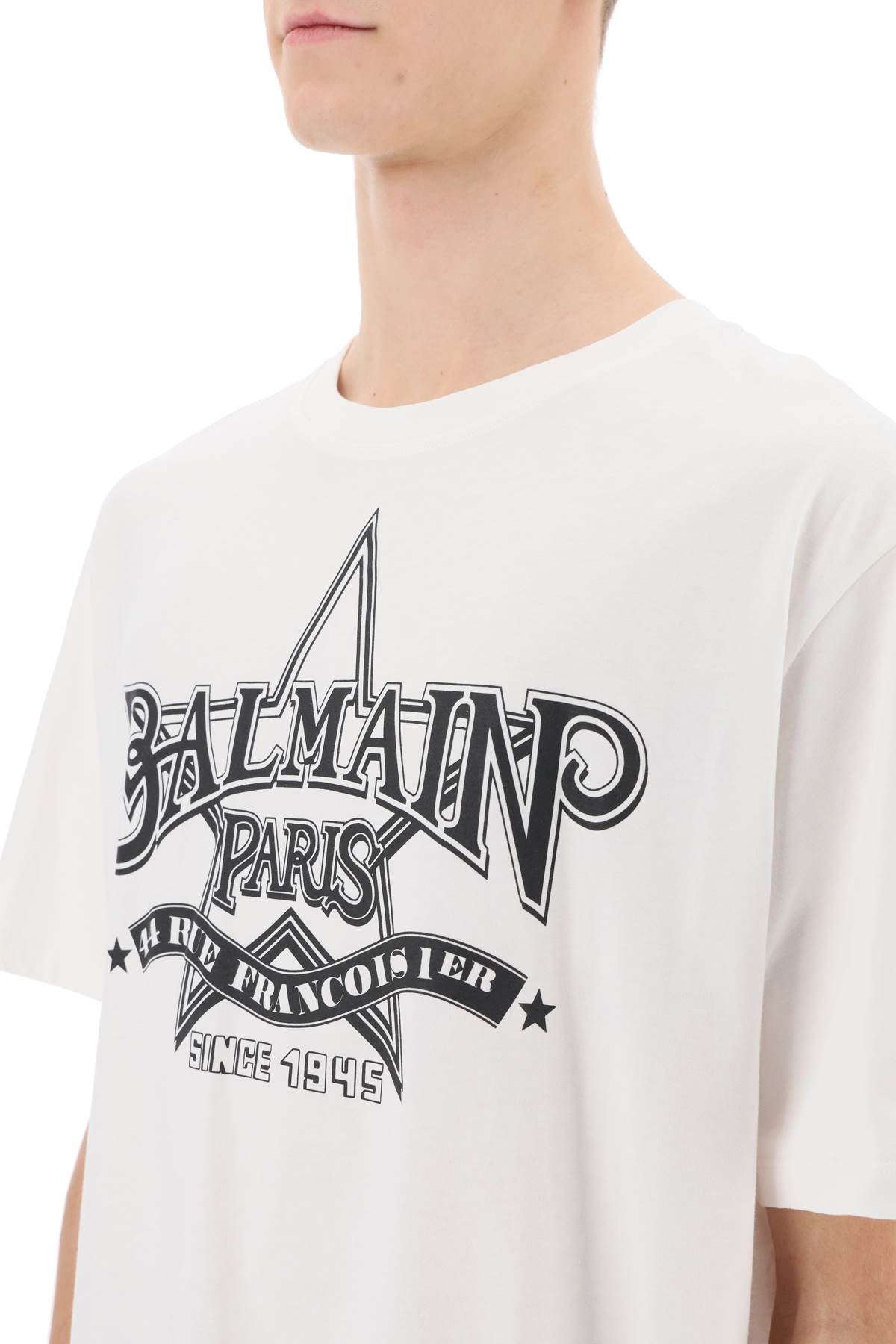Balmain T-shirt crafted in pure cotton jersey with contrast logoed star print on the chest. It features micro-ribbed crew neck. Oversized fit with dropped shoulders. The model is 187 cm tall and wears size L.
