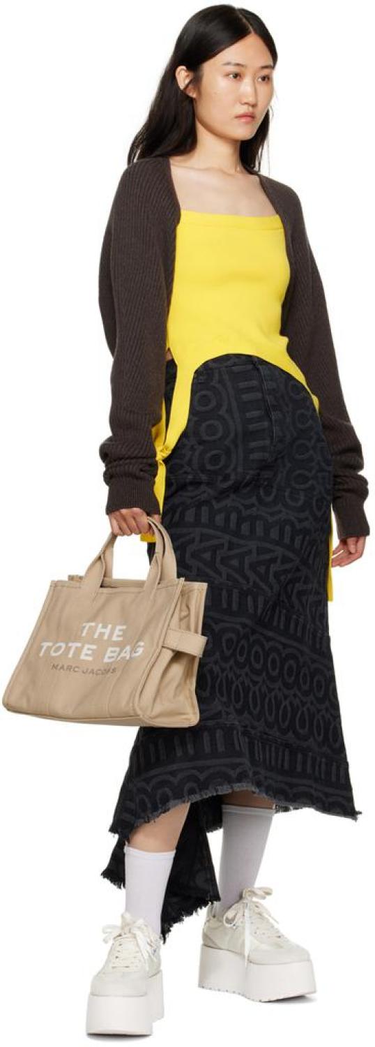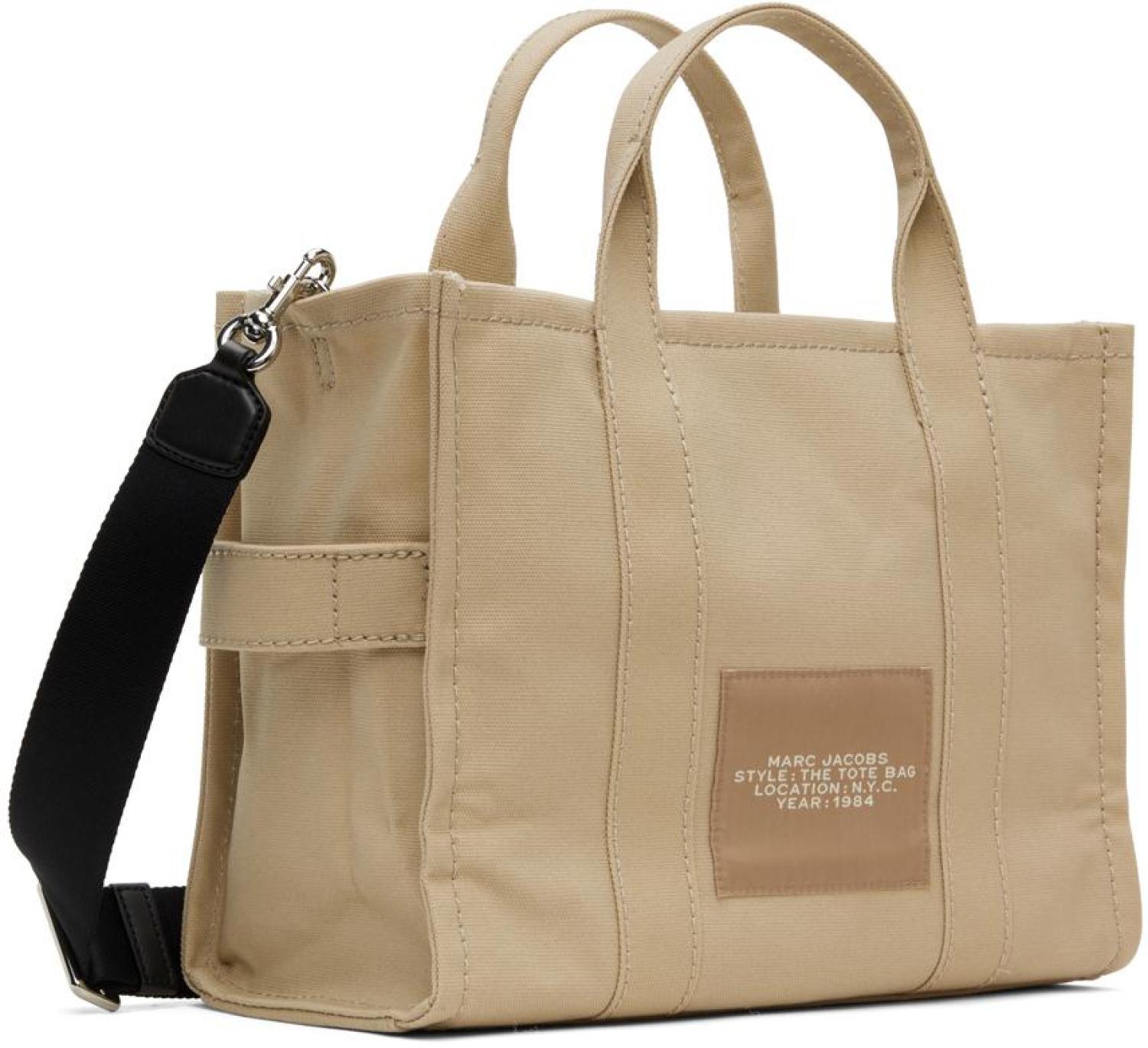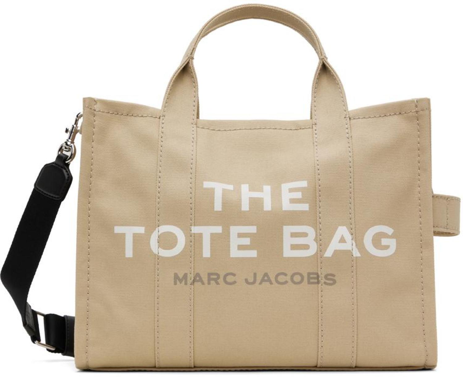 Marc Jacobs Beige Medium 'The Tote Bag' Tote Cotton canvas tote in beige. Text and logo printed in white at face. · Twin rolled carry handles · Detachable and adjustable shoulder strap · Carry handle at side · Logo patch at back face · Zip closure · Patch and zip pockets at interior · Unlined · H11 x W13 x D6 in Supplier color: Beige Textile. Made in Viet Nam. 232190F049061