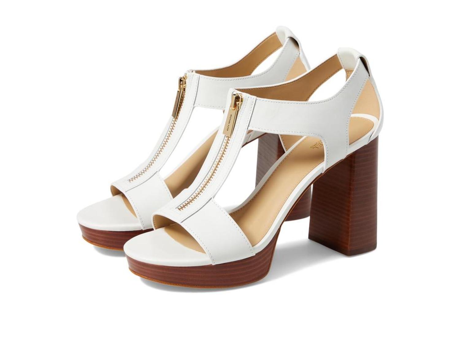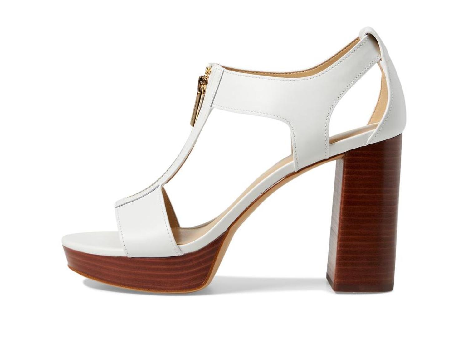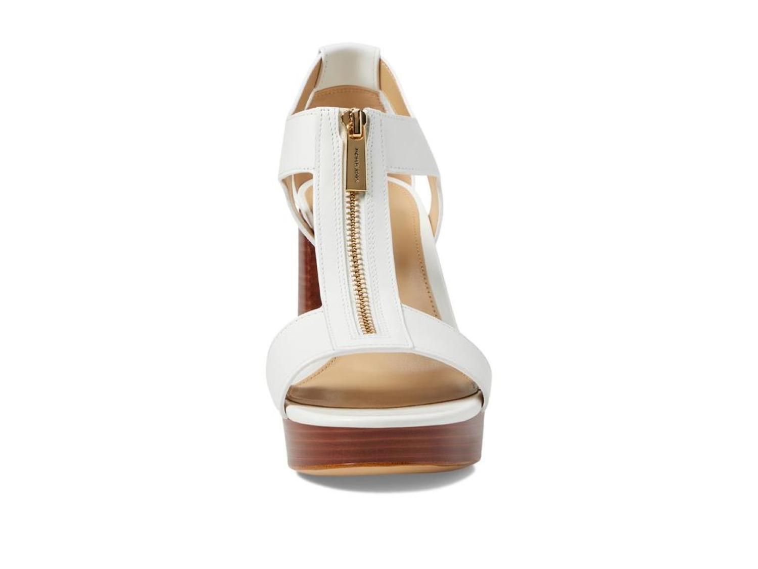 Slay a stylish look by wearing the MICHAEL Michael Kors® Berkley Mid Sandal. The slip-on style sandals have Block platform sandals on stacked heels with iconic exposed zip-front upper and Michael Kors® zipper pull. The sandals have a leather upper, with faux leather lining, and synthetic insole for utmost comfort. The cushioned heels have branded hardware that elevates the look, making them perfect for prolonged wear. Rubber outsole. Imported.