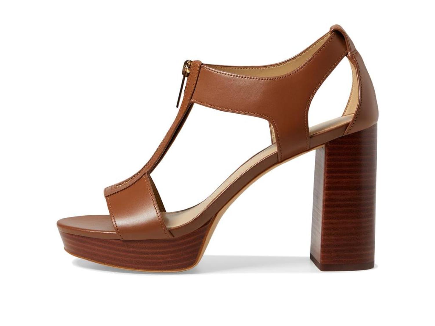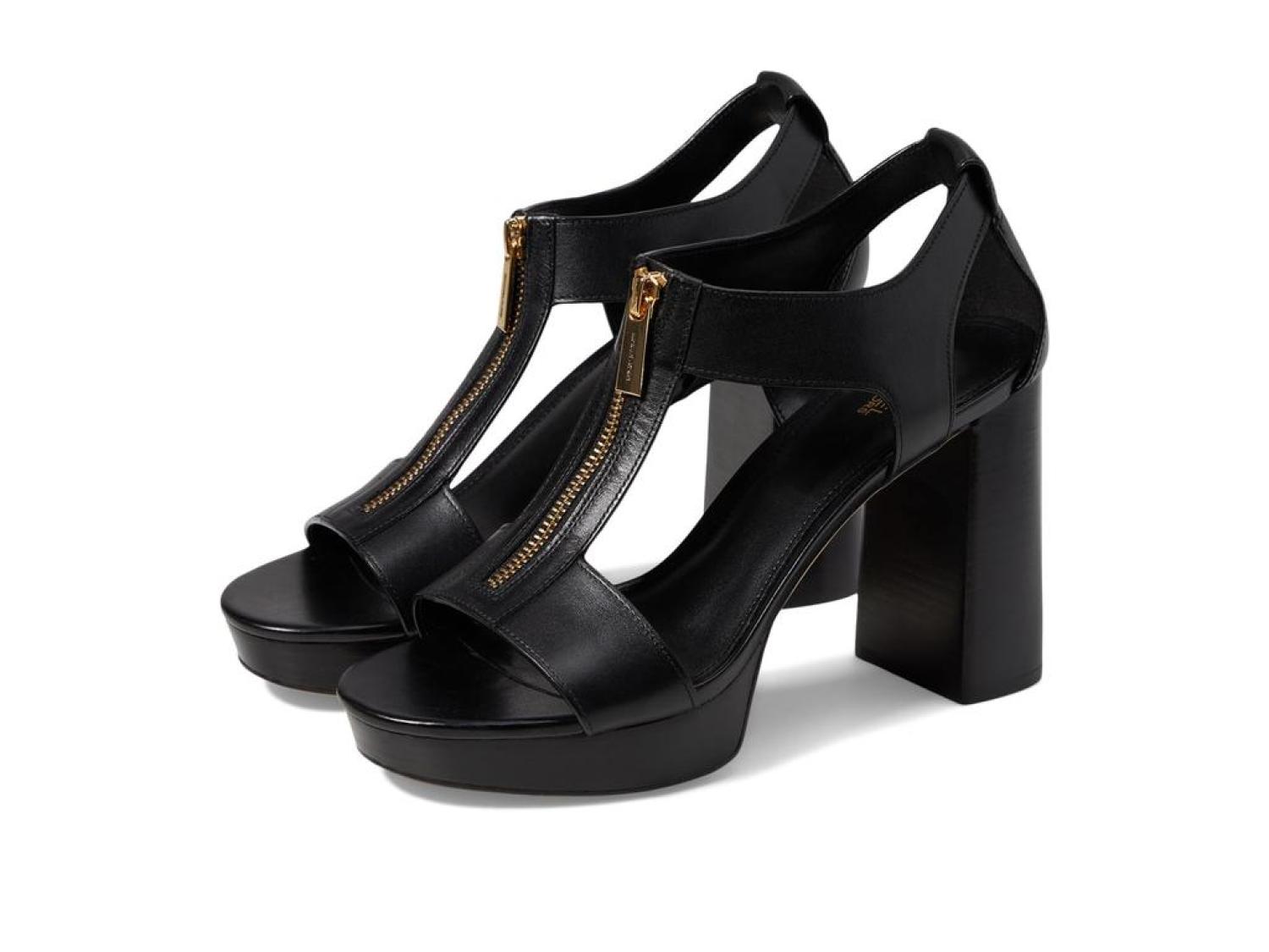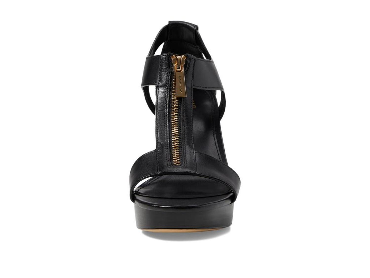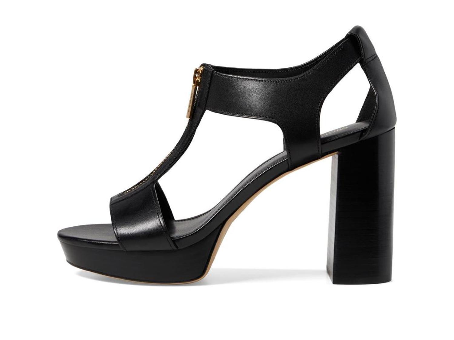 Slay a stylish look by wearing the MICHAEL Michael Kors® Berkley Mid Sandal. The slip-on style sandals have Block platform sandals on stacked heels with iconic exposed zip-front upper and Michael Kors® zipper pull. The sandals have a leather upper, with faux leather lining, and synthetic insole for utmost comfort. The cushioned heels have branded hardware that elevates the look, making them perfect for prolonged wear. Rubber outsole. Imported.