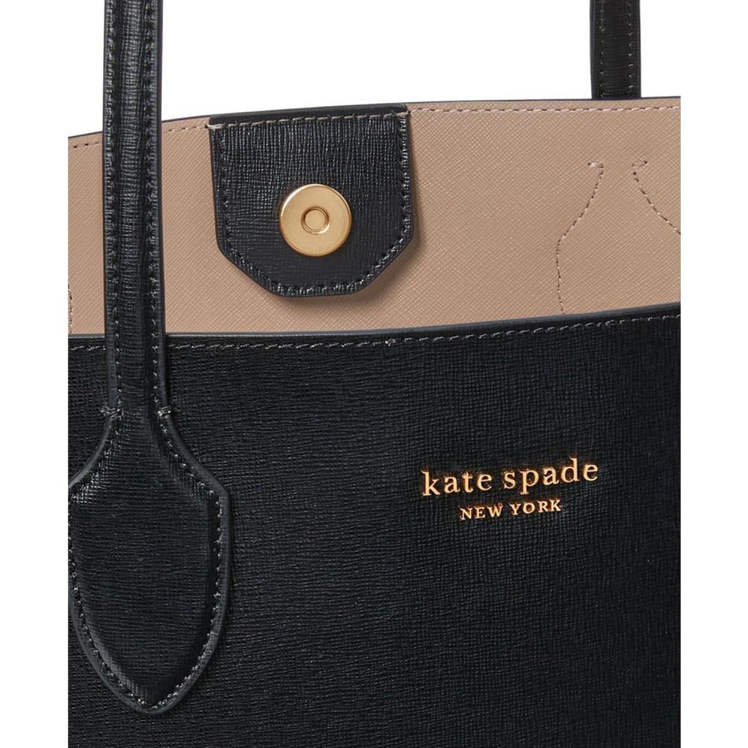 Elevate your 9-to-5 style with the new Bleecker tote by kate spade new york. It's made from durable saffiano leather with plenty of room for your everyday essentials, including a 13" laptop. Medium sized bag; 13-8/10"W x 11-8/10"H x 5-6/10"D (width is measured across the bottom of the bag) Silhouette is based off 5'9" model 11"L handles Magnetic tab closure Gold-tone exterior hardware Removable zip pocuh Fits 13" laptop This item purchased online must be returned to the vendor by mail only. This item cannot be returned to Macy's stores. Leather Spot Clean Imported