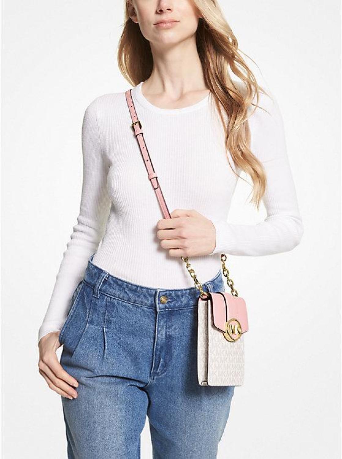 Reimagined in a shrunken silhouette, this version of our beloved Carmen bag will stylishly keep your phone and card case within arm’s reach. It’s designed in our instantly recognizable Signature-print canvas with contrasting faux leather panels. The high-shine hardware amps up the luxe factor, while its crossbody strap can be adjusted to the perfect length. Wear it from day to dark with ease.