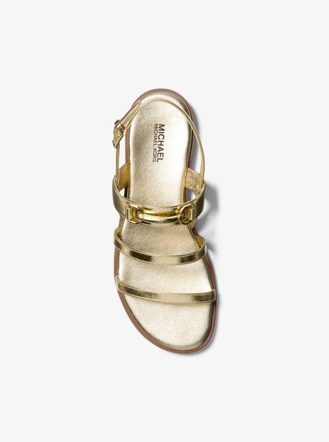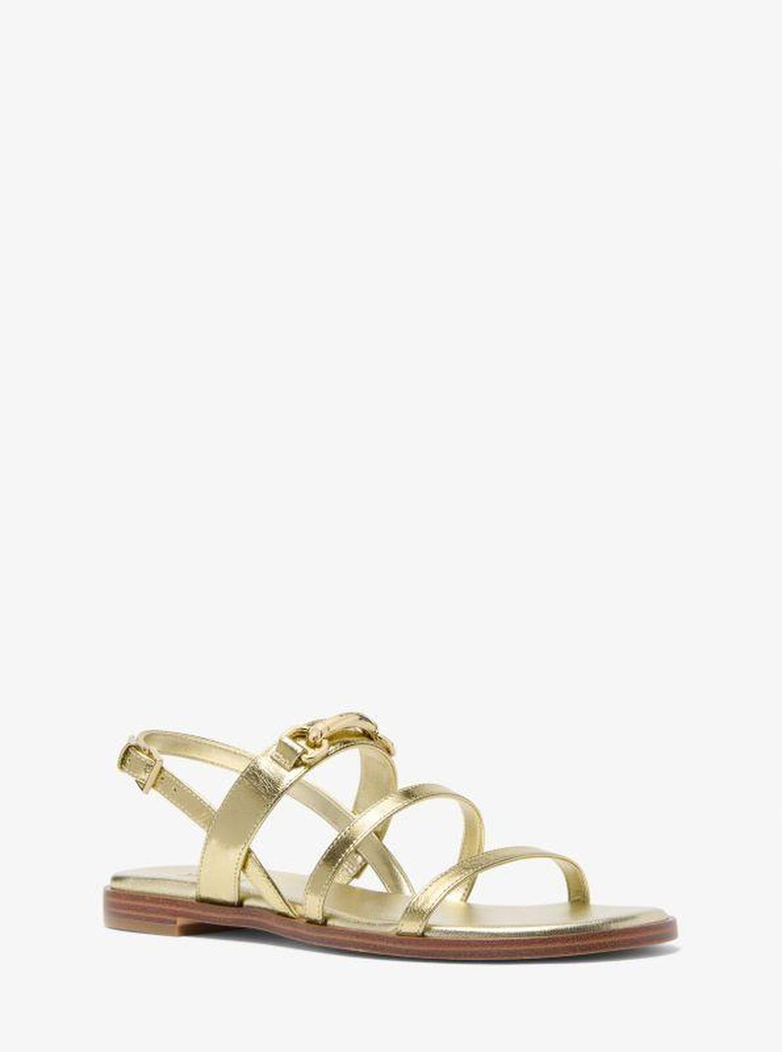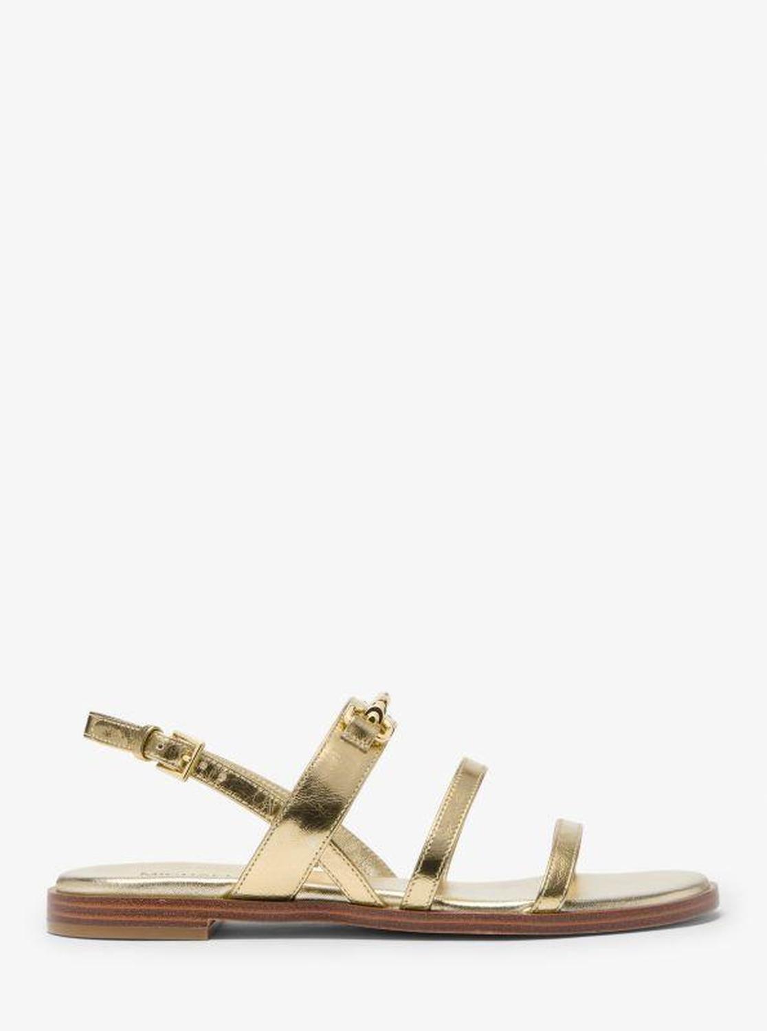 Michael Kors—defining modern glamour since 1981. • Sandal • Metallic leather • Lining: polyurethane blend • Sole: rubber • Open toe • Buckle fastening • Imported • Sandal • Metallic leather • Lining: polyurethane blend • Sole: rubber • Open toe • Buckle fastening • Imported