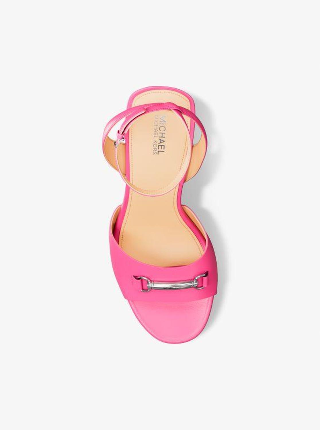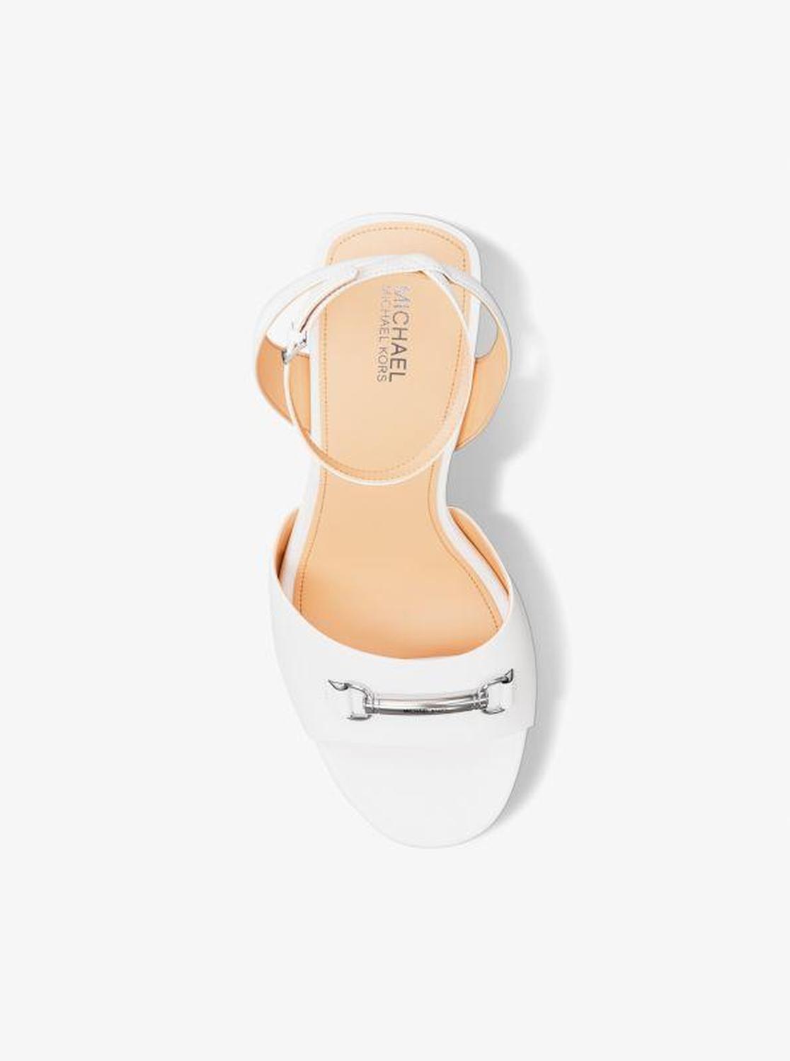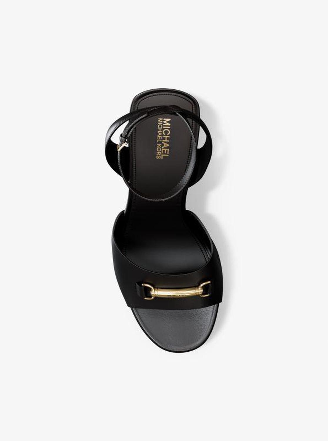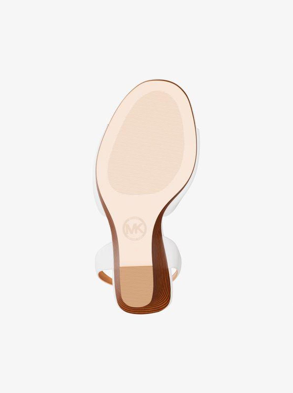 Michael Kors—defining modern glamour since 1981. • Wedge sandal • Leather • Lining: polyurethane blend • Sole: rubber • Open toe • Buckle fastening • Heel height: 4.25” • Heel type: stacked • Imported • Wedge sandal • Leather • Lining: polyurethane blend • Sole: rubber • Open toe • Buckle fastening • Heel height: 4.25” • Heel type: stacked • Imported
